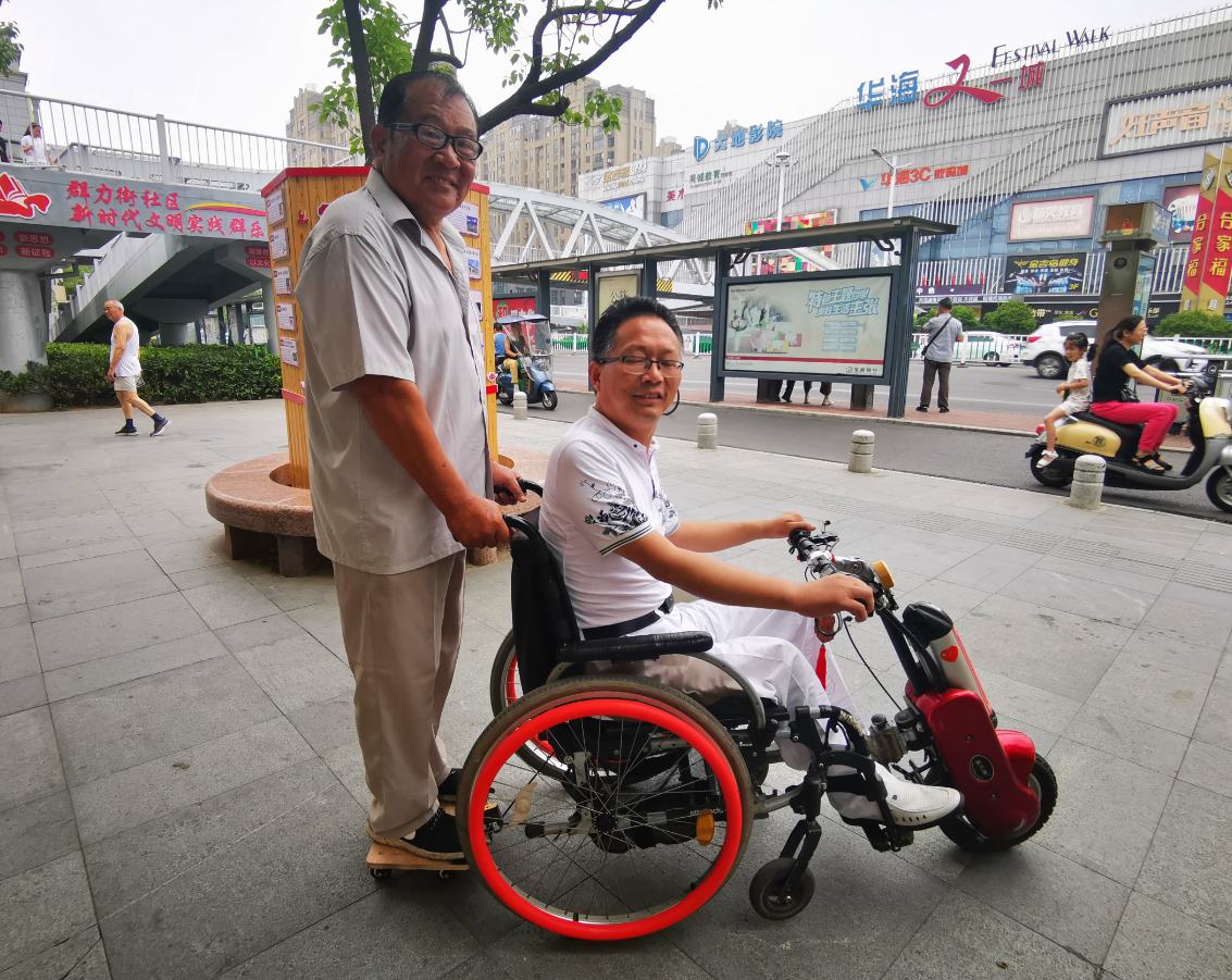 老锁匠为电动轮椅装上万向轮脚踏板