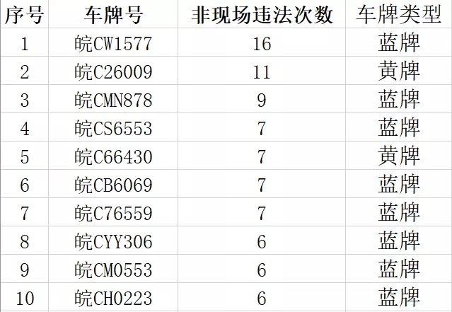 交警部门公布5月20日至6月20日”违法前十名”、“超速前十名”