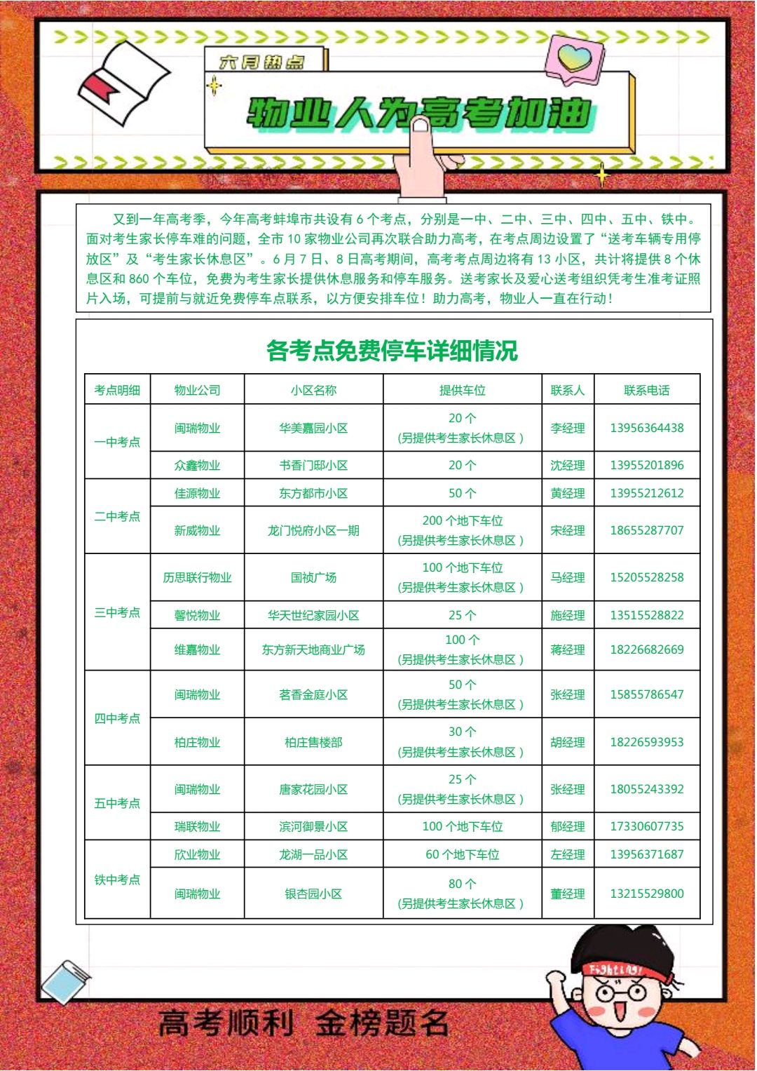 助力高考 小区物业提供停车位和休息点