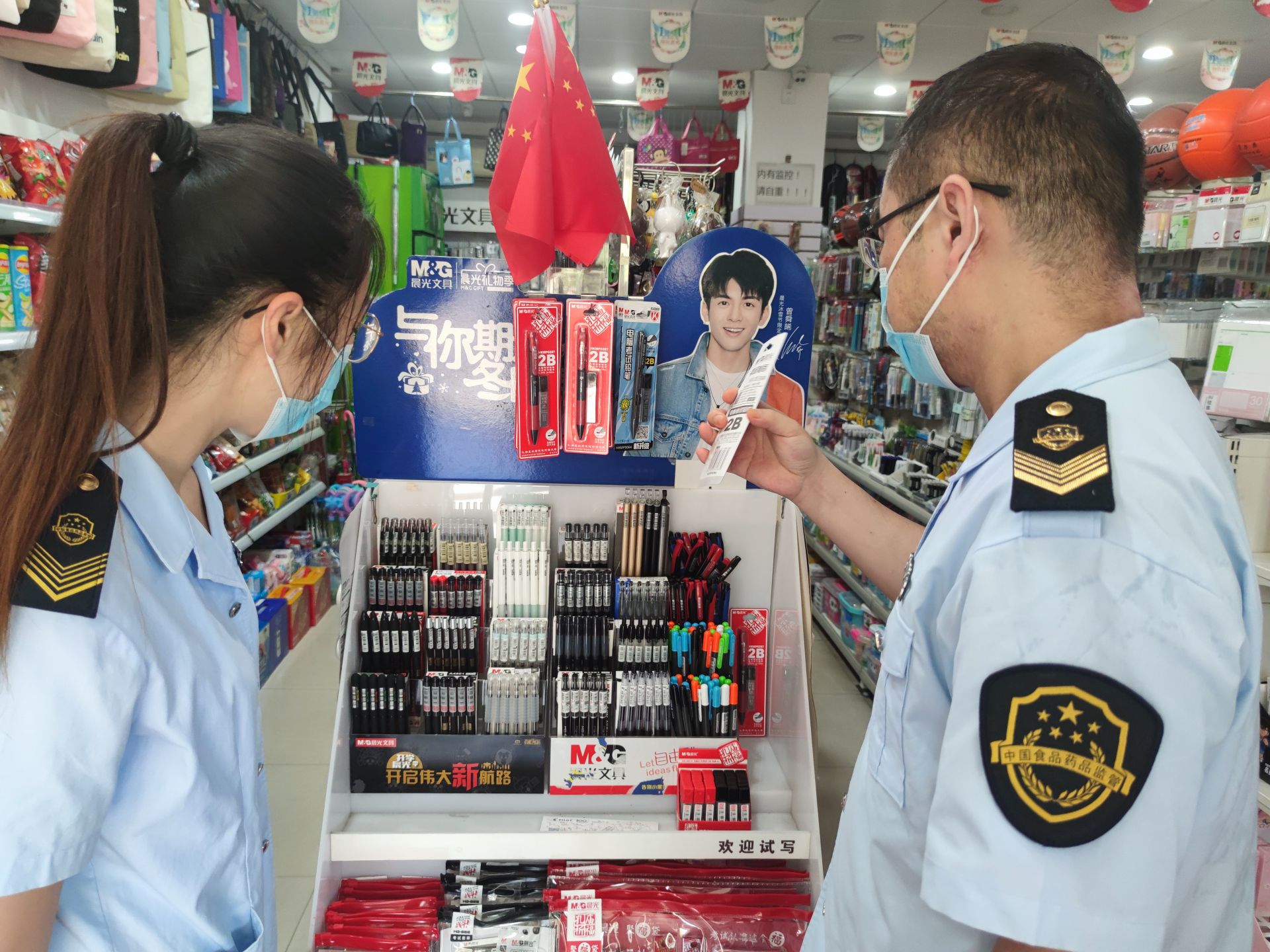 当日,执法人员随机来到蚌埠三中,对该考点周边的两家文具店、眼镜店、药店、茶饮店进行逐一检查。