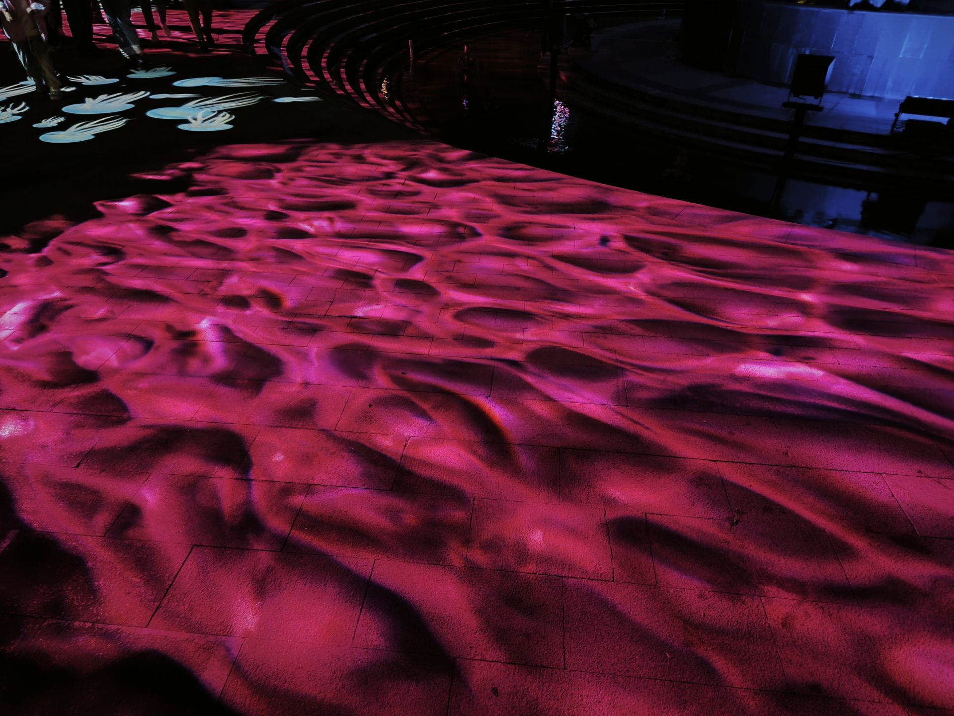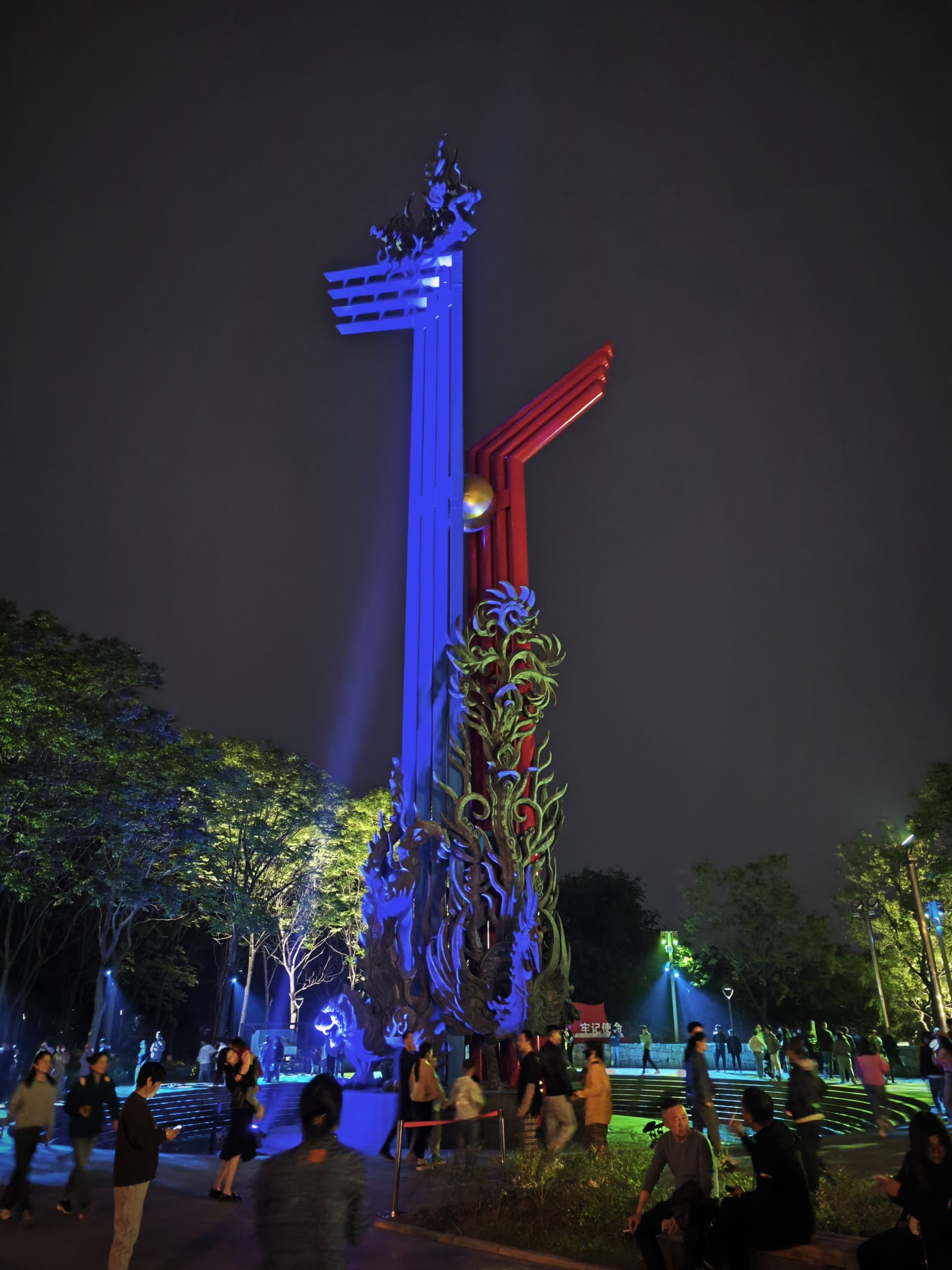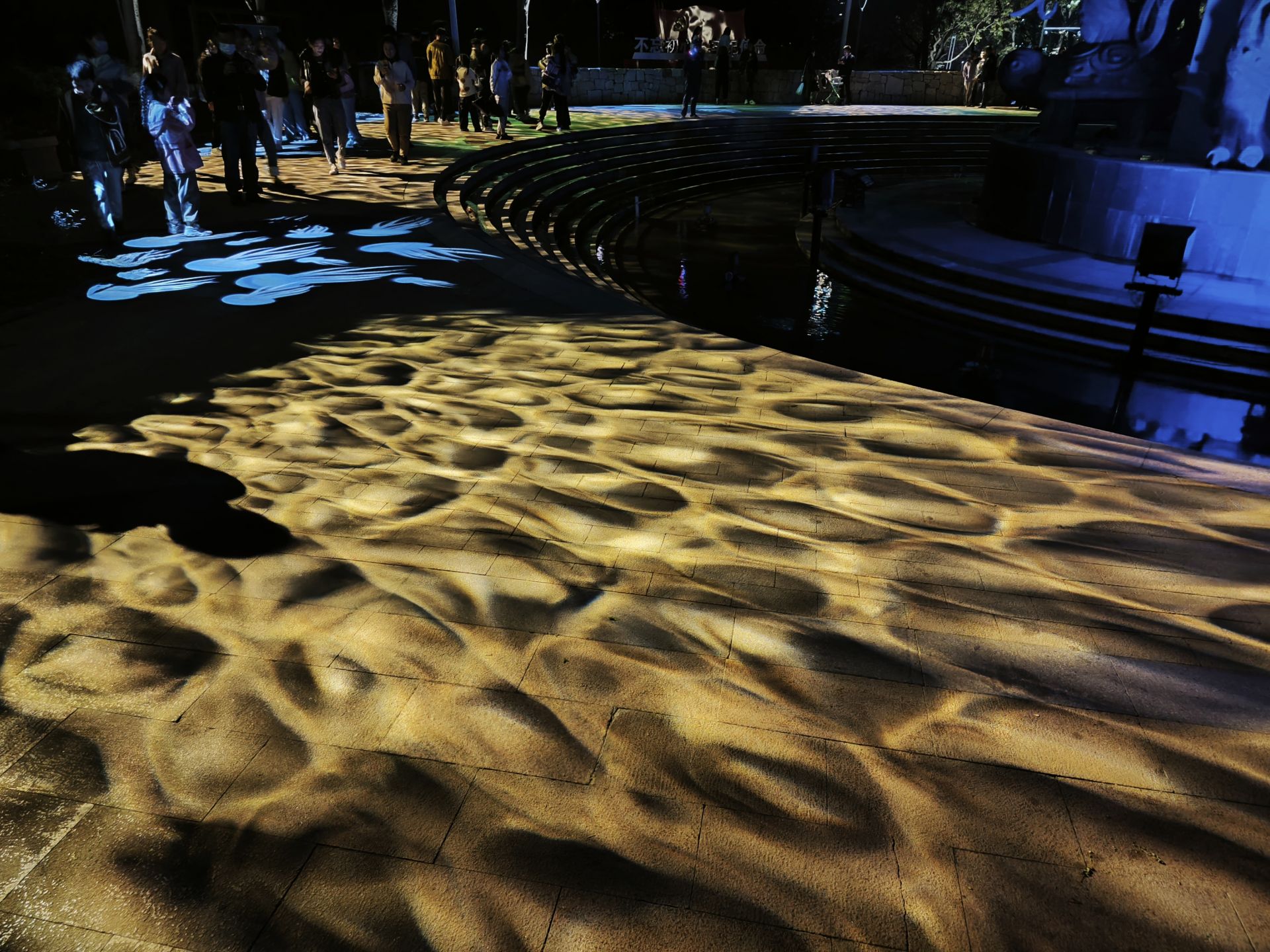 蚌埠发布客户端讯 4月28日晚,南北分界线雕塑四周灯光秀开始调适。红、蓝色的分界线在灯光和夜色的衬托下更加好看,五彩斑斓的水波荡漾,水母被投射在地上生动逼真。尽管天空飘起小雨,但依然引得前来打卡游客驻足拍照。