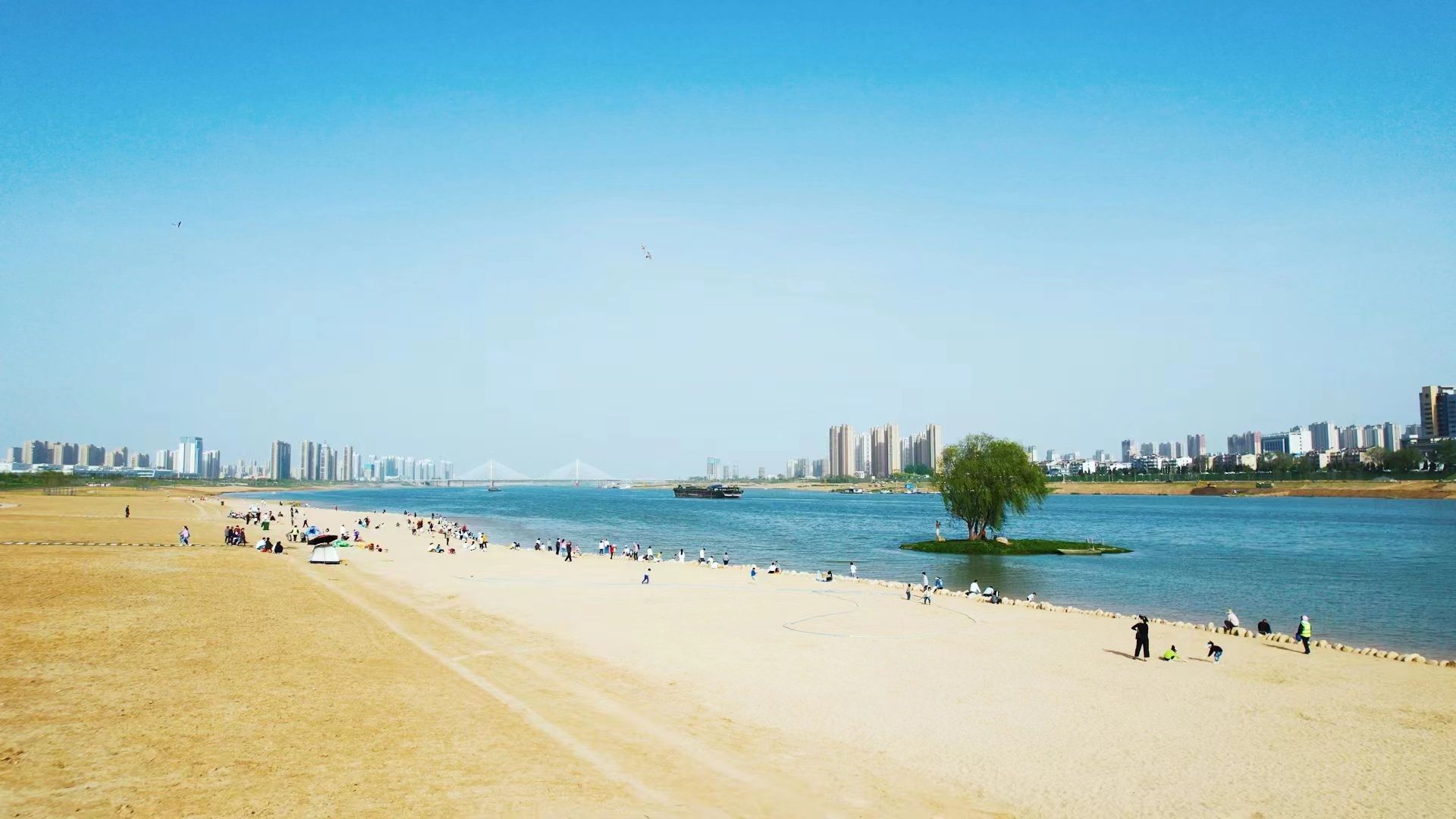 淮河,静静地流淌在长江与黄河之间,与秦岭一起构成了我国的南北气候分界线。为解决蚌埠淮河主城区防洪、生态保护、环境治理、交通出行、南北均衡发展等一系列问题,我市坚持以习近平生态文明思想为指引,积极践行“绿水青山就是金山银山”发展理念,建设“靓淮河”工程,全面优化主城区淮河防洪交通生态体系。工程西起怀远荆涂大桥,东至长淮卫大桥,全长26公里,治理面积52平方公里,以“一川清、两滩靓、三脉通、十景红”为总体布局,大幅提升城市防洪排涝供水蓄水补水标准,缩短皖北地区入海距离,建成贯穿西东的“城市绿肺”“生态绿轴”和“城市中心公园”,实现了良好的生态效益、经济效益和社会效益。