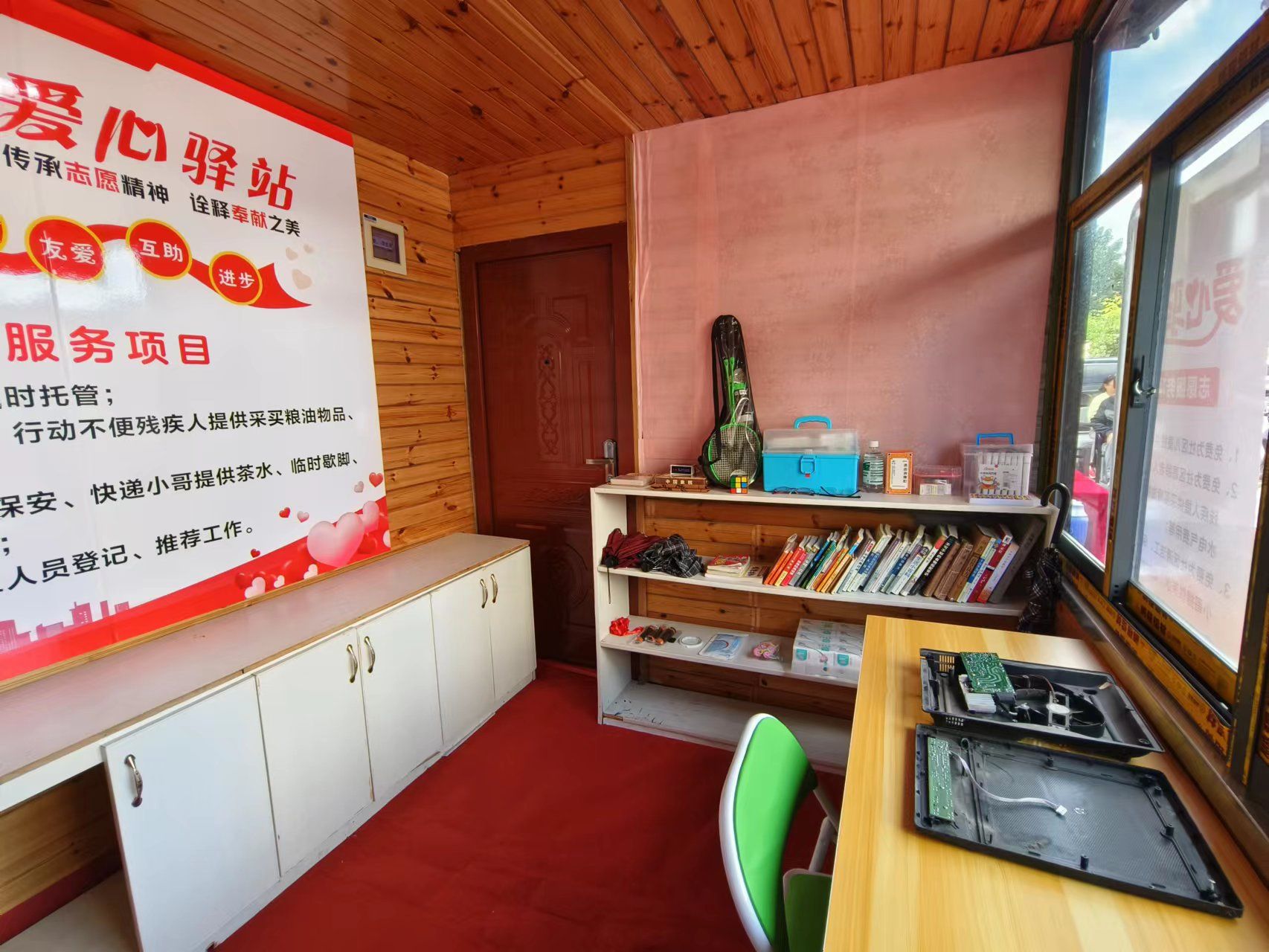走进秀水社区家政服务驿站,记者看到大约十平方的小屋,麻雀虽小,五脏俱全。里面有接待区和活动区。在接待区内,工作人员可以登记下居民的家政需求,然后通过电脑查询到联网信息,为居民挑选到合适的家政服务人员。在隔壁的活动区内,记者看到有维修人员在操作台上为居民修理小家电。一旁的架子上还收纳了一些常用急救药品、书籍、象棋、雨伞等用品。