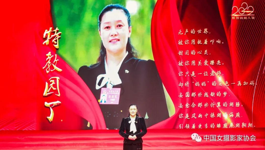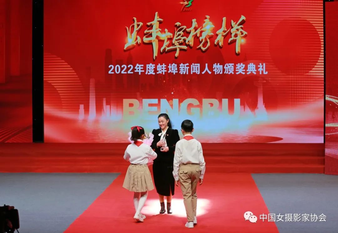 在2022年度蚌埠新闻人物颁奖典礼上,大屏幕上打出“特教园丁”丁海燕的颁奖词。赵佑文 摄