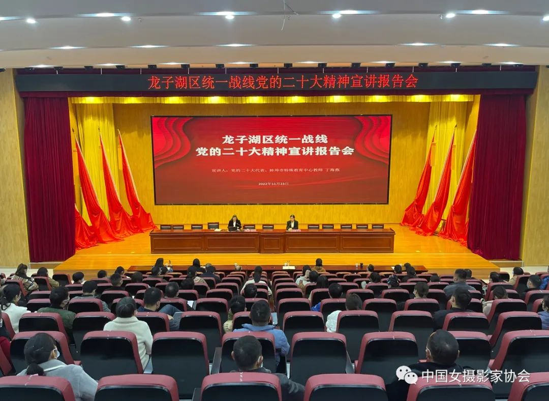 2022年11月23日,丁海燕在蚌埠市龙子湖区统战部进行党的二十大精神宣讲。(图片由丁海燕提供)