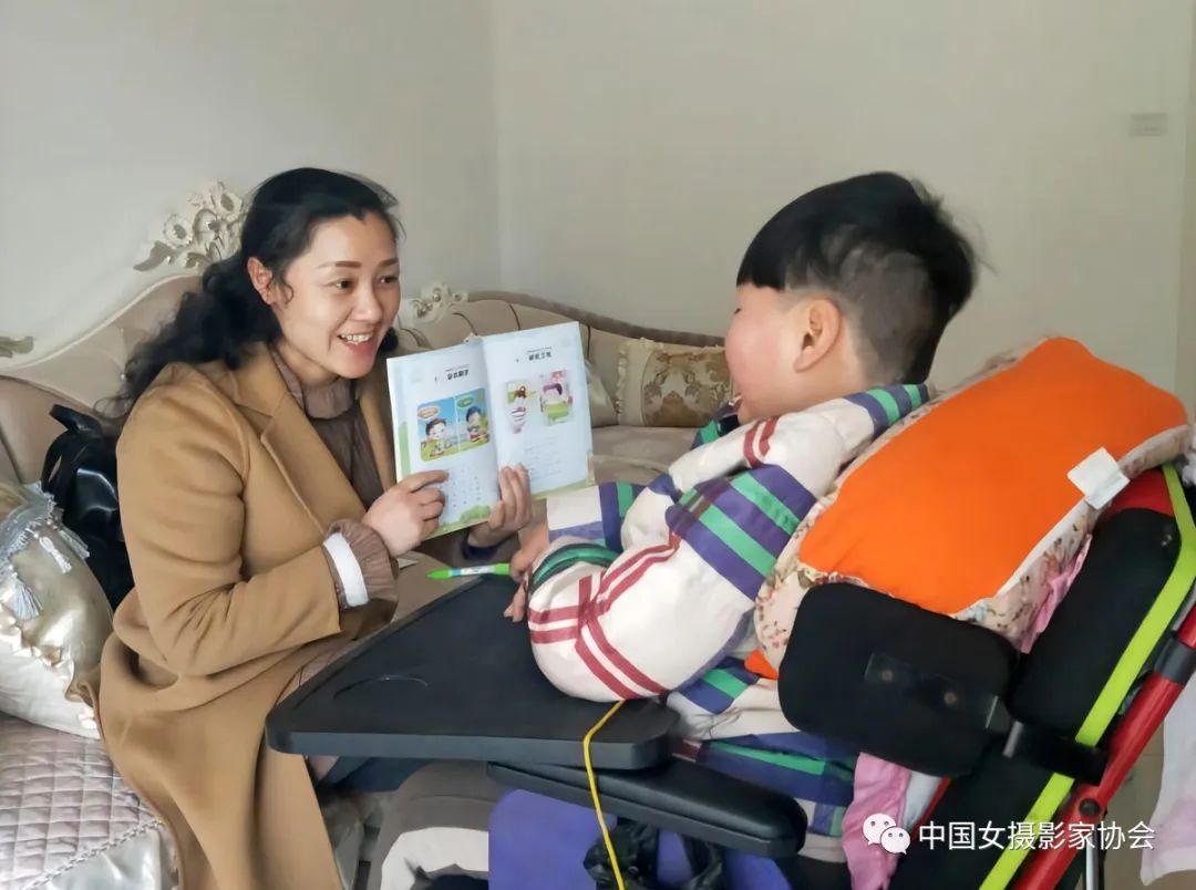 五年如一日,丁海燕为重度残疾儿童送教上门。(图片由丁海燕提供)
