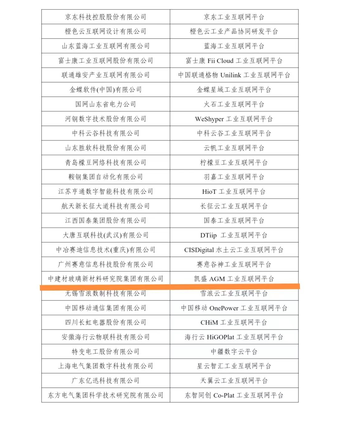蚌埠发布客户端讯 记者从市经信局了解到,9月11日,工信部公布了2023年跨行业跨领域工业互联网平台名单,我市中建材玻璃新材料研究院集团有限公司的凯盛AGM工业互联网平台成功入选,成为此次全省2家获选企业之一,目前全省累计共3家企业入选国家级“双跨”工业互联网平台。