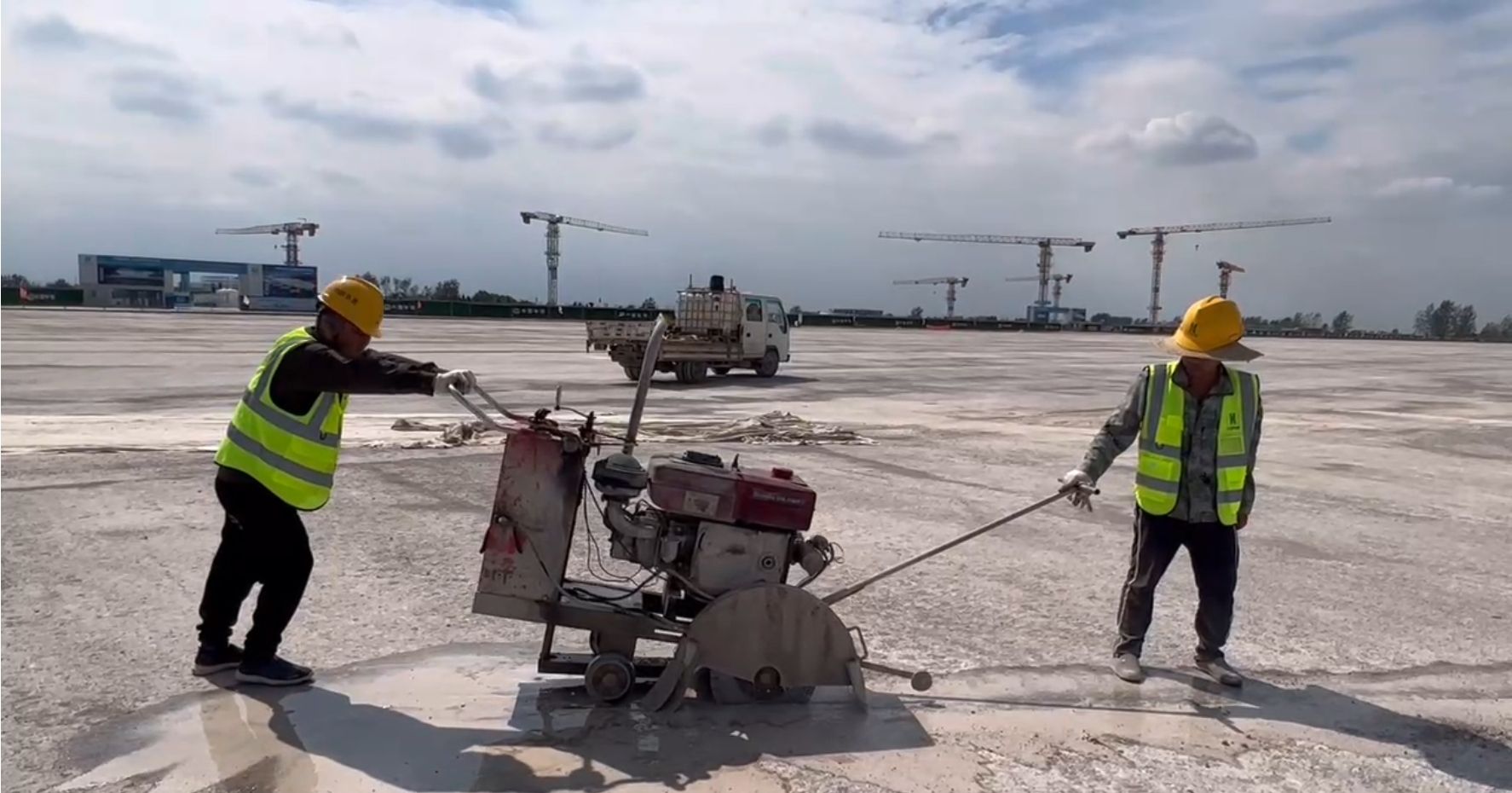 9月22日,记者在飞机跑道上看到,伴随着刺耳的声音,几名工人正在进行切槽工作,随后将逐步开展预埋目视灯光工程管线工作。“这些设施能在夜间及天气不好能见度低的时候,给飞机驾驶员提供目视助航。”施工单位相关负责人叶军介绍,跑道、滑行道及停机坪的灯光助航设施预留预埋施工从9月5日开始,计划在10月20日之前完成。