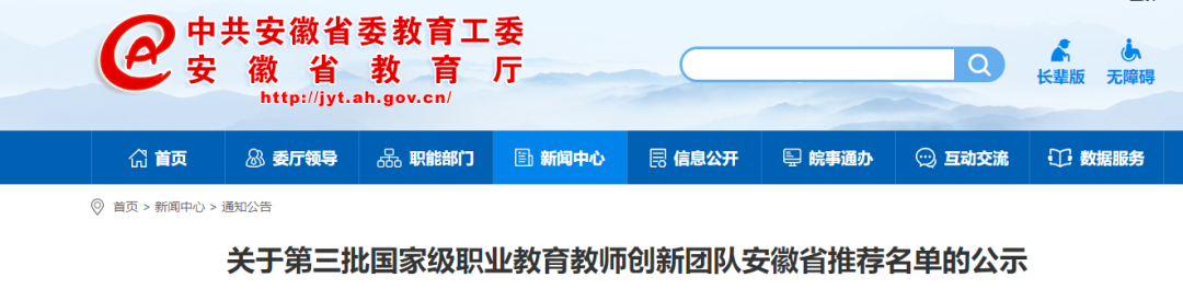 近日,安徽省教育厅发布了《关于第三批国家级职业教育教师创新团队安徽省推荐名单的公示》。拟推荐芜湖职业技术学院机电一体化技术创新团队等18个团队申报第三批国家级职业教育教师创新团队。具体内容如下。