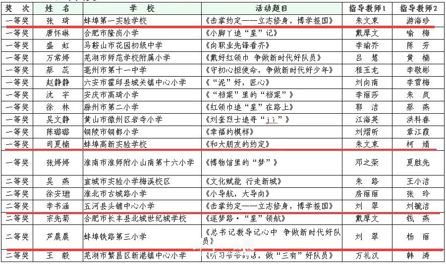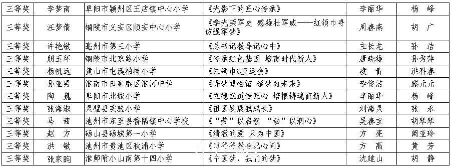 一等奖:蚌埠市 合肥市 马鞍山市 芜湖市 安庆市 六安市