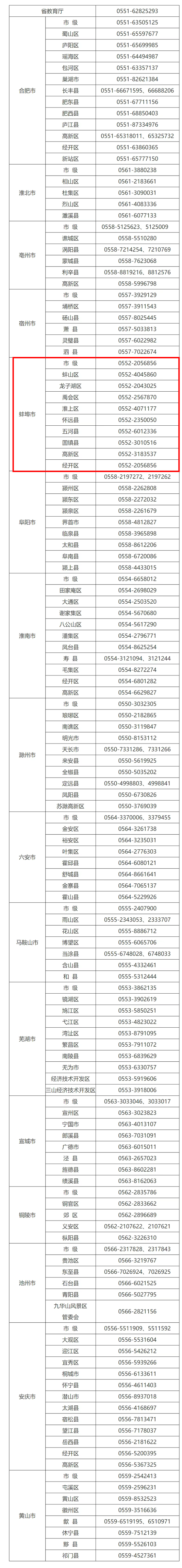 蚌埠发布客户端讯 2月27日,安徽省教育厅公布省、市、县(市、区)中小学体育课开设和挤占监督举报电话。