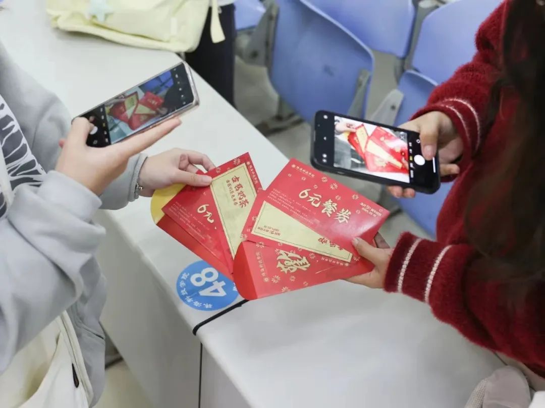 每人收到的红包中都会包含一张6元餐费抵扣券,寓意“六六大顺”,可在学校食堂使用。此外,红包中还有“高校版消费券”,共1万份,每张消费券金额在3.5元到126元不等,可用于火锅店、奶茶店、美食店、超市、手机电脑维修店等校内70余家店以及共享单车、校园巴士等交通消费,涵盖学生的吃喝住行。