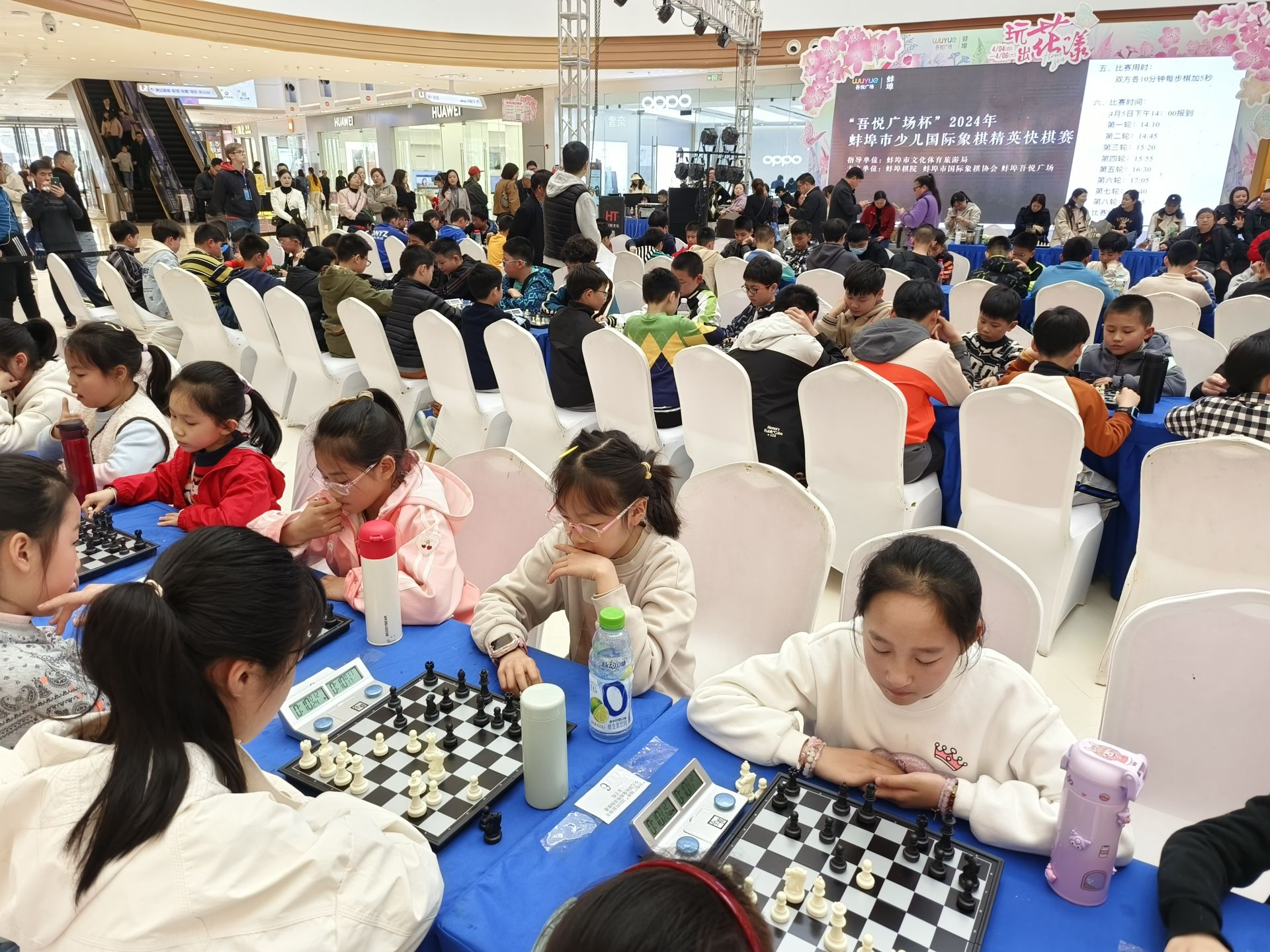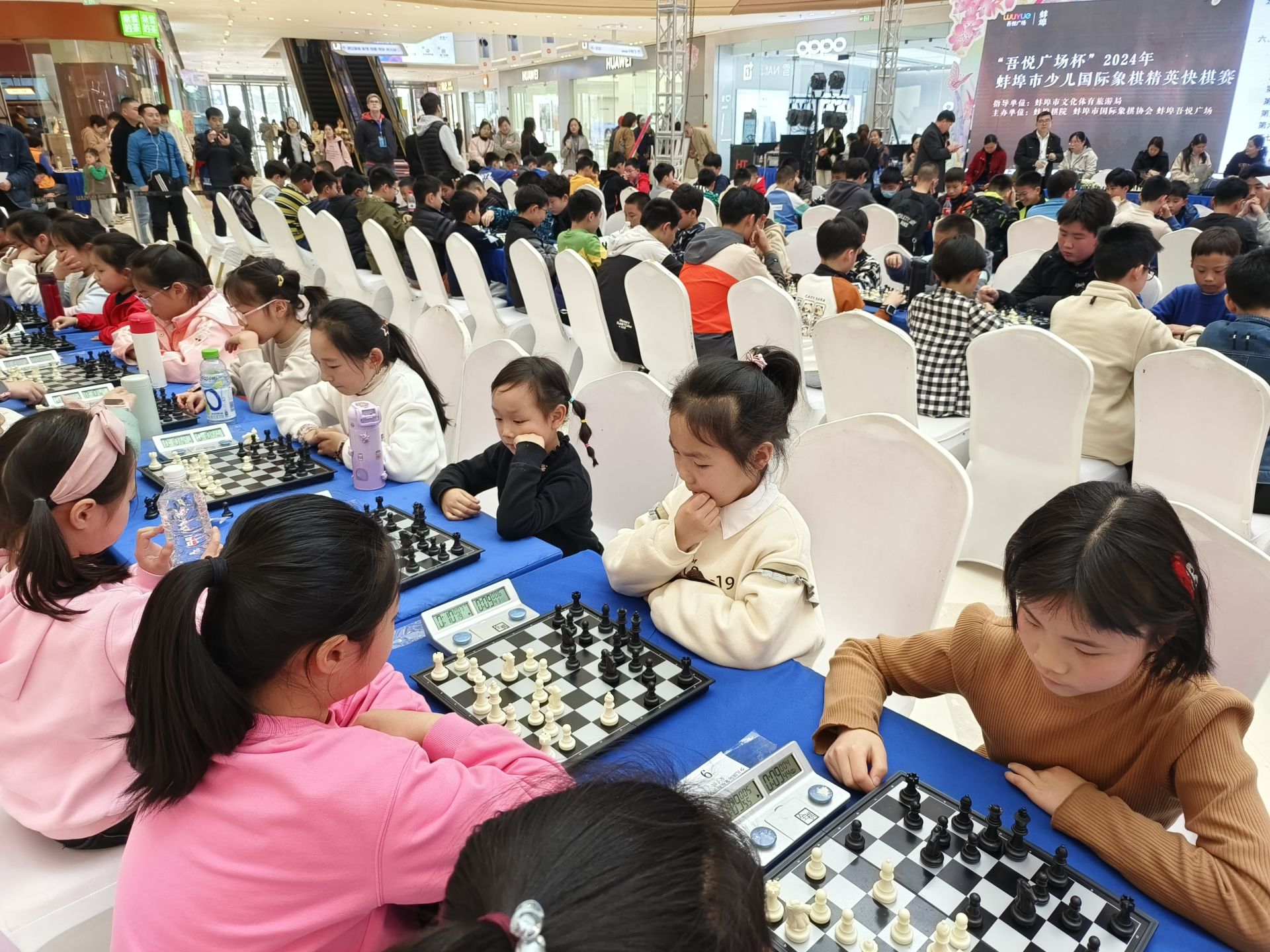 4月5日下午,蚌埠市少儿国际象棋精英快棋赛举行,来自全市的120名小棋手参加了比赛,其中不乏有全国冠军、省冠军和棋协大师、候补棋协大师等高水平棋手,他们将参加8轮的比赛决出名次。小棋手们也度过一个有意义的假期。