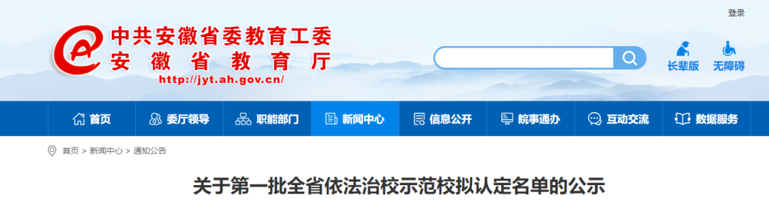 近日,安徽省教育厅网站发布了《关于第一批全省依法治校示范校拟认定名单的公示》。拟认定安徽工业大学等17所高校和合肥市第八中学等18所中小学校为第一批全省依法治校示范校。具体内容如下。