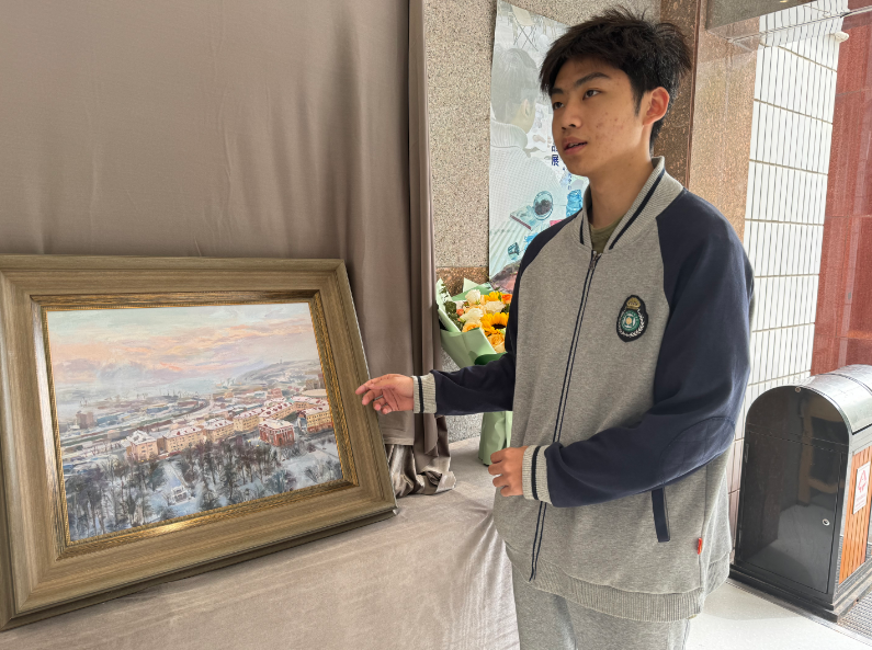 在这次的画展中,贾逸凡展出的也多是油画,并不是美术联考中的考察内容。“回看近3年的学画经历,那些所谓的套路、技法,其实无需在意。每一幅画都有独特的生命力与意义,从最真诚的视角去看待,用最真诚的心态去感受,这便是我的技法。”贾逸凡说,学校专业老师告诉他:“美术,美为首术在后,审美永远大于技法。”他期望能用画笔体现出对当下社会的关注,诸如城市发展、生态环境、亲子关系、心理健康等等,包括对人自身、对人生的感悟与思考。