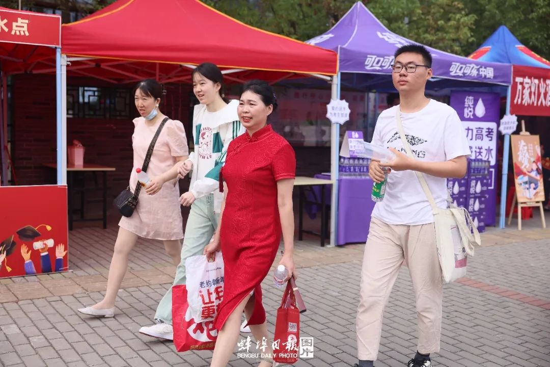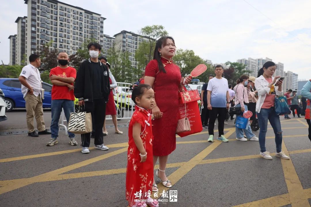 ▲家长们清一色旗袍装扮,把最美好的祝福穿在身上,寓意高考必胜、金榜题名,为考生加油。
