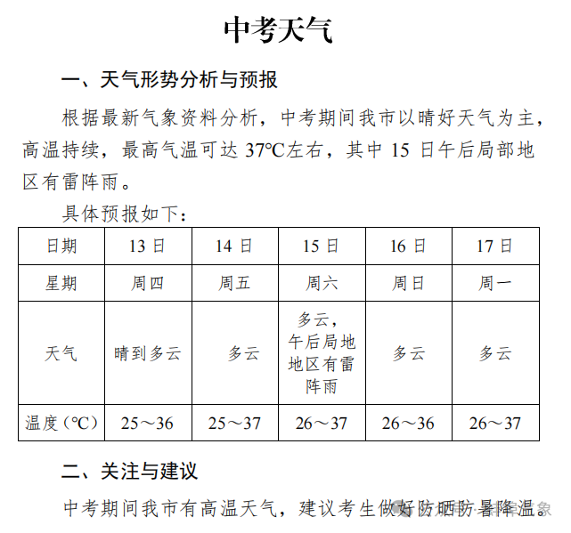 一起来看看中考天气