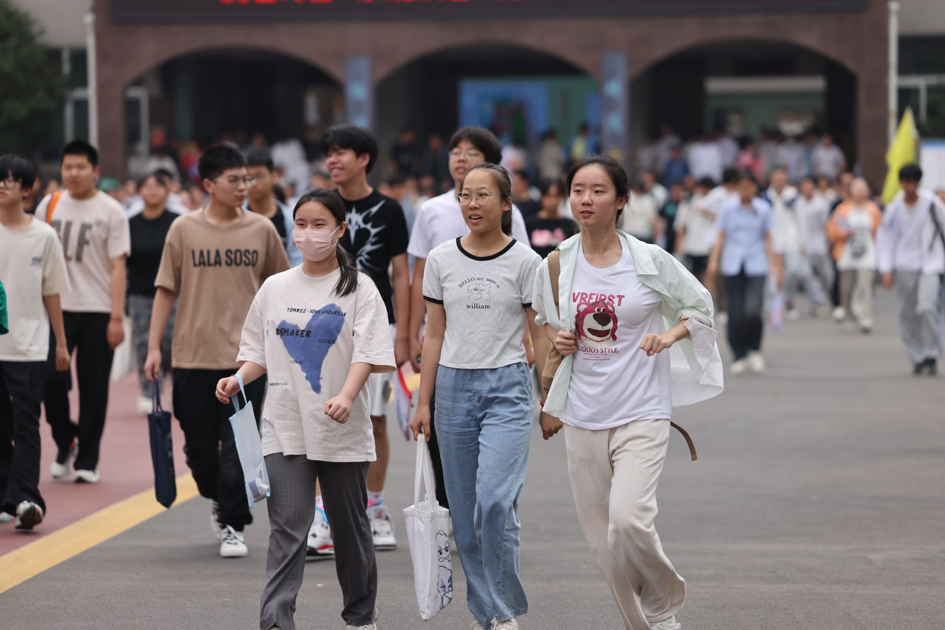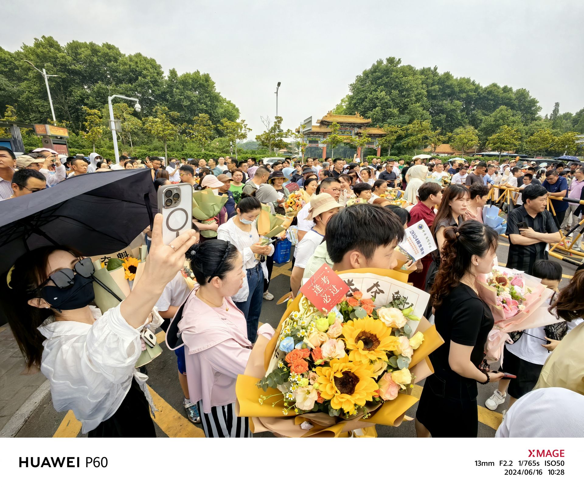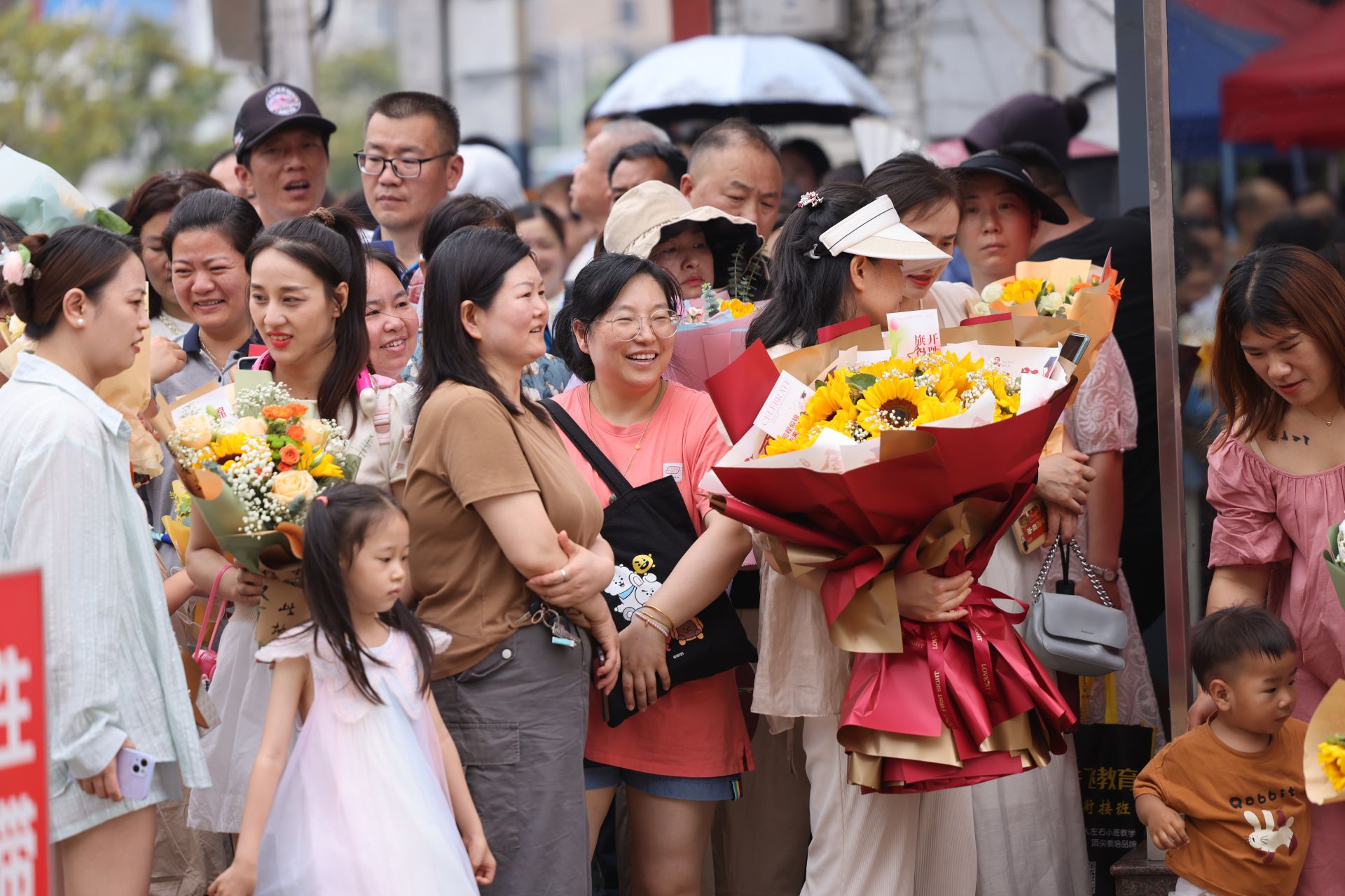 6月16日上午10点半,随着英语交卷铃声响起,2024年蚌埠初中学业水平考试九年级科目全部结束。在六中考点,家长手捧鲜花迎接考生。(融媒体记者 陈昂 摄)
