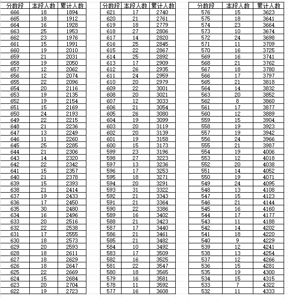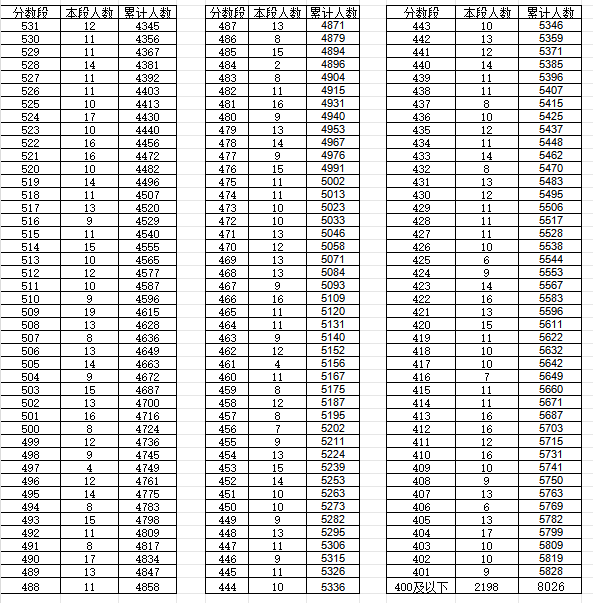 成绩分数段(一分一档)
