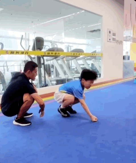 虽然非常累,但是悠悠依然坚持每个动作都严格按照教练要求来做,甚至超额完成任务。教练规定一分钟做一个收腹跳,要求他做60个以上,他能做到70甚至80个。