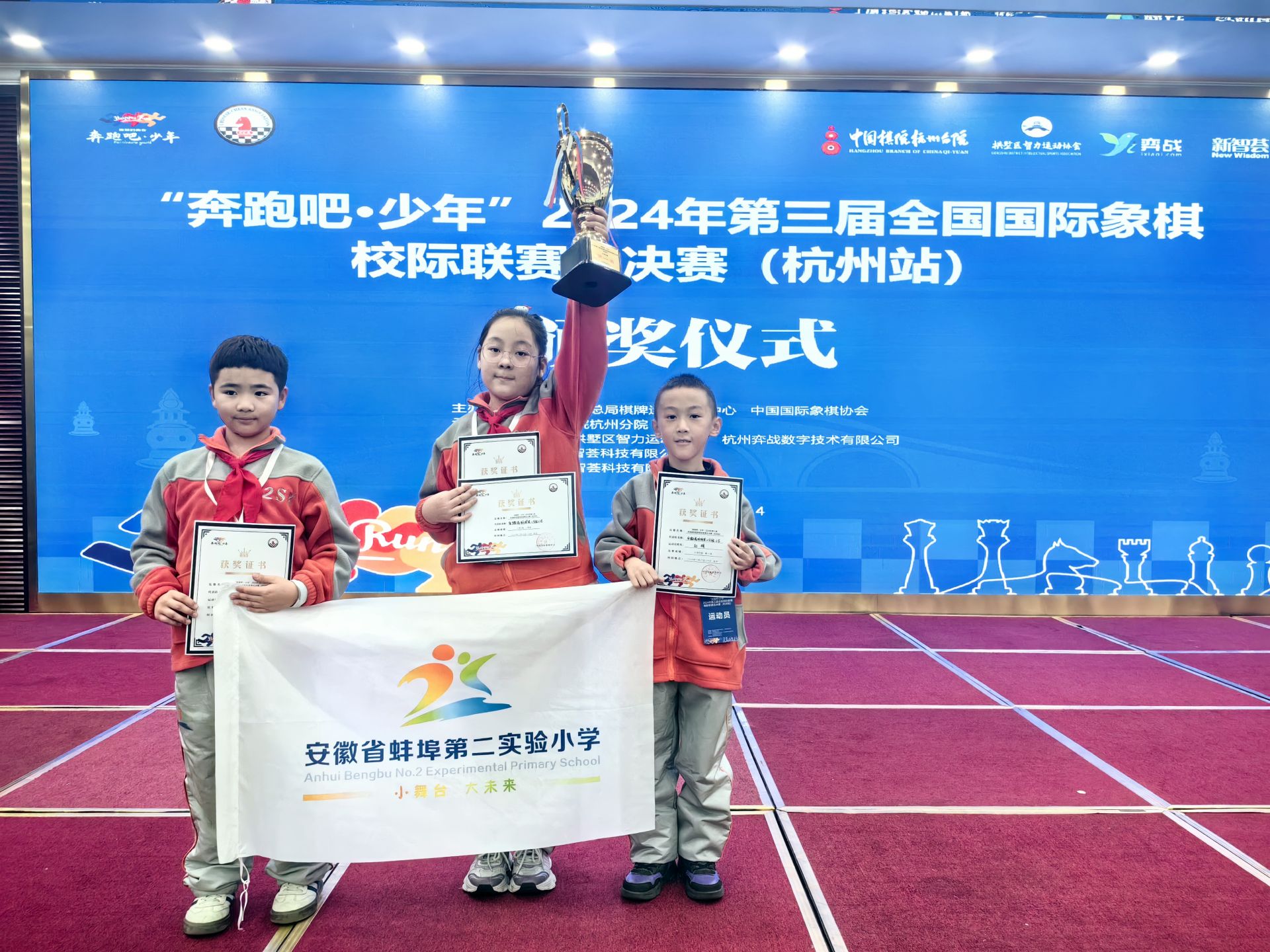蚌埠发布客户端讯(融媒体记者 何沛)近日,“奔跑吧·少年”第三届全国国际象棋校际联赛总决赛(杭州站)圆满落幕。经过激烈角逐,蚌埠第二实验小学代表队获得小学组冠军。