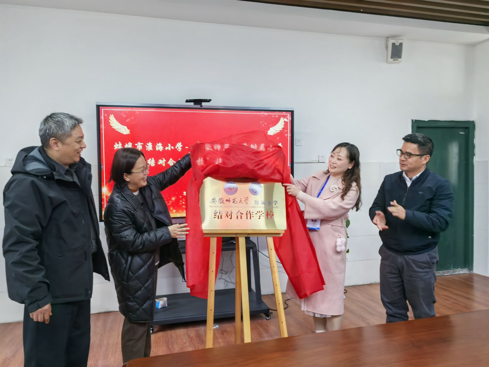 此次结对合作活动中,安徽师范大学、禹会区人民政府及蚌芜两校领导共同为“结对合作学校”揭牌。安徽师范大学附属小学"严慧名校长工作室”负责人向蚌埠市淮海小学执行校长仝伟伟授牌,为双方更加深入地开展交流学习,再添新途径。双方将以此次合作为契机,在教育资源共享、教学管理创新、教学研究深化等方面携手共进,共同推动基础教育优质资源的扩容和提质,为培养更多优秀人才贡献力量。