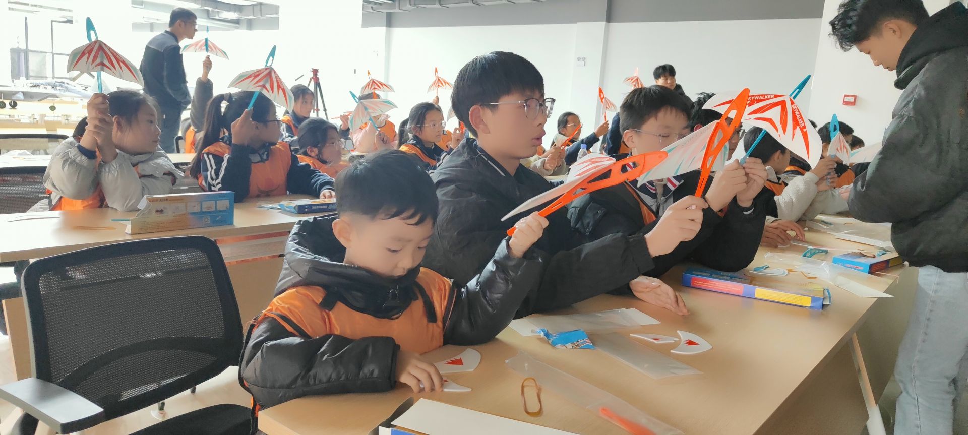 在垓下国防教育基地,陈梁为孩子们科普了航空航天系列知识,声情并茂地讲述了我国航空航天事业发展的历程,每一个话题都激发着孩子们对航空探索的热情和好奇心。“哇,太棒啦!”尤其是一件件精美的航空模型,牢牢吸引住了孩子们的目光,连连惊叹不已。