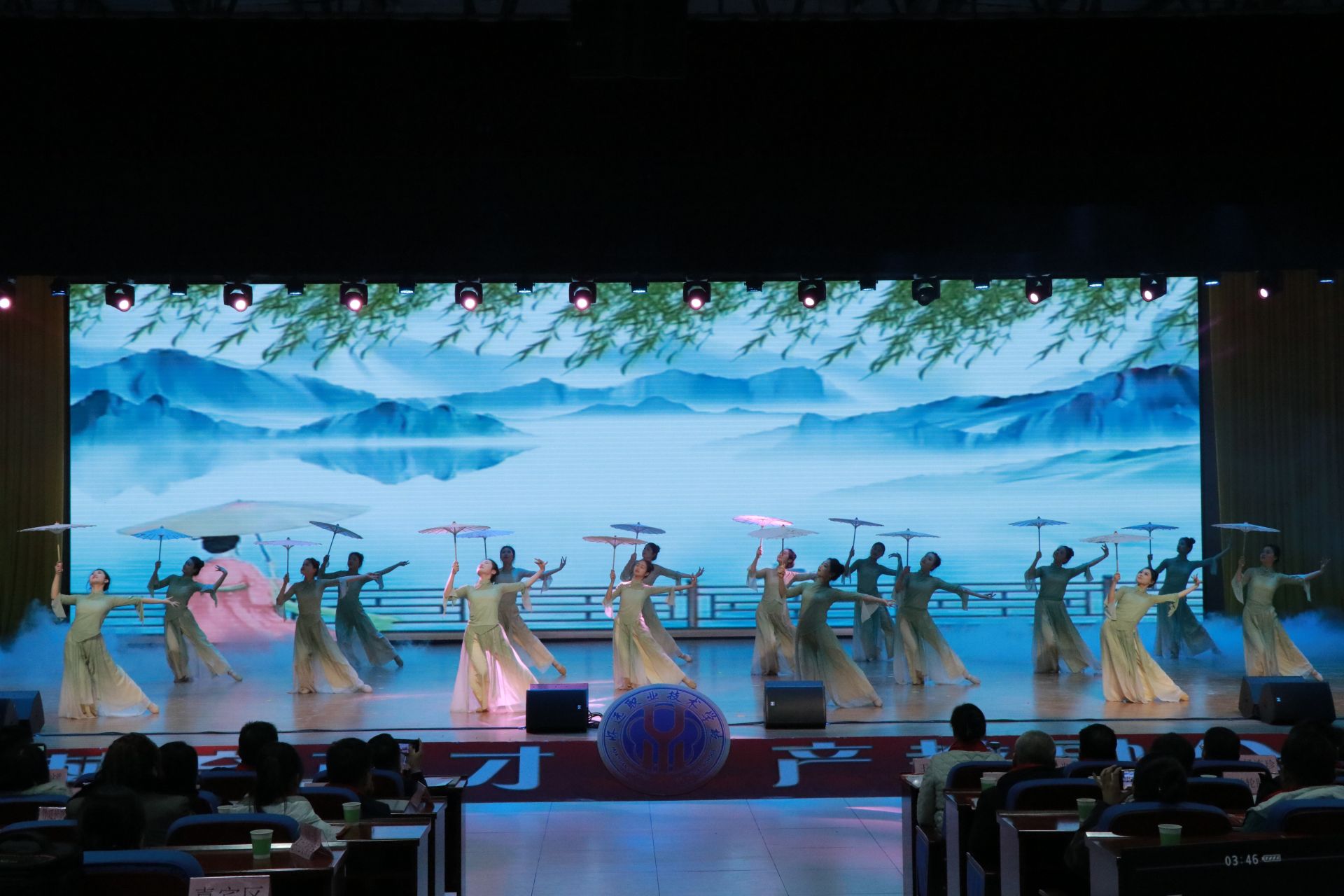 随着欢快激昂的开场音乐响起,活力四射的《春到福来》开场舞瞬间点燃现场气氛,舞者们灵动的身姿与欢快的节奏交织,驱散了冬日的寒意,为整场汇演奠定了热烈欢快的基调。整场联欢会节目内容丰富多彩,形式多样,包括歌唱、舞蹈、朗诵、情景剧等。怀职师生们以才艺为笔,以热情为墨,将青春的活力与激情挥洒得淋漓尽致,将文艺汇演推向一个又一个高潮。合唱《盛世中国》以其恢弘的音乐、平实的歌词道出了国与家的深厚情感,展现了国的强大与家的祥和,为本次汇演画上了圆满句号。