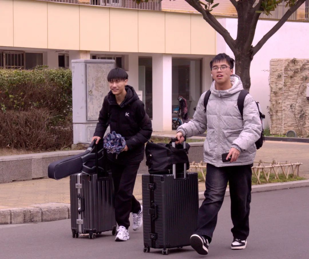 行李箱滚轮打破校园寂静