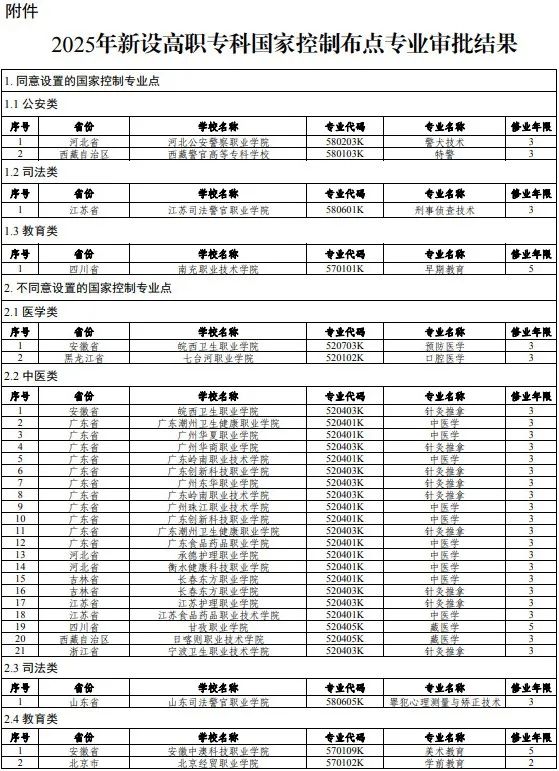 附件:2025年新设高职专科国家控制布点专业审批结果