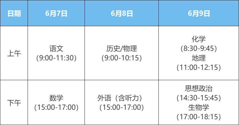 新高考省份根据选考科目考试日程安排,全部考试结束的时间为9日或10日。河北、山西、吉林、江苏等地将于9日结束全部考试;北京、天津、浙江、山东等地将于10日结束全部考试。