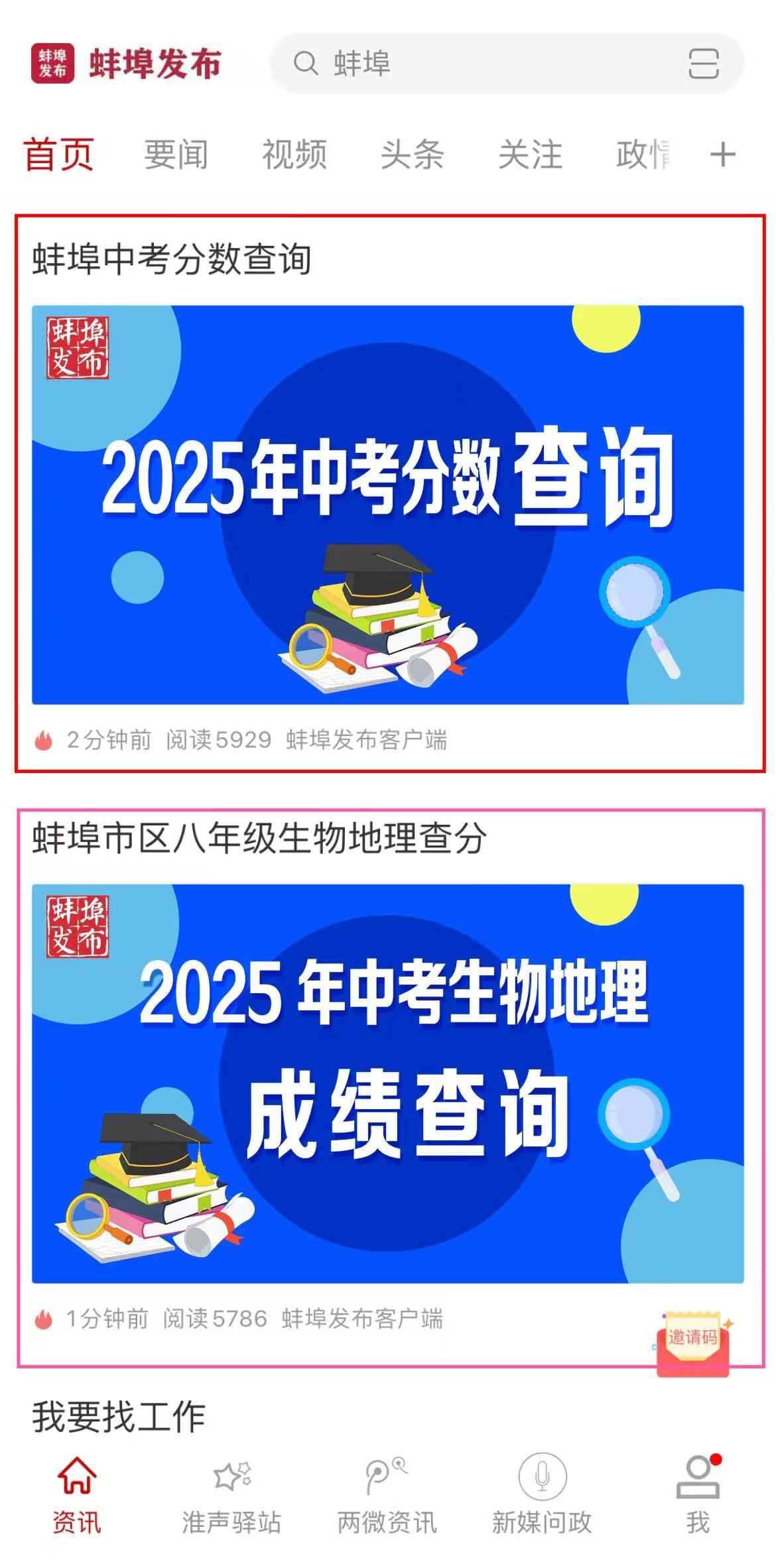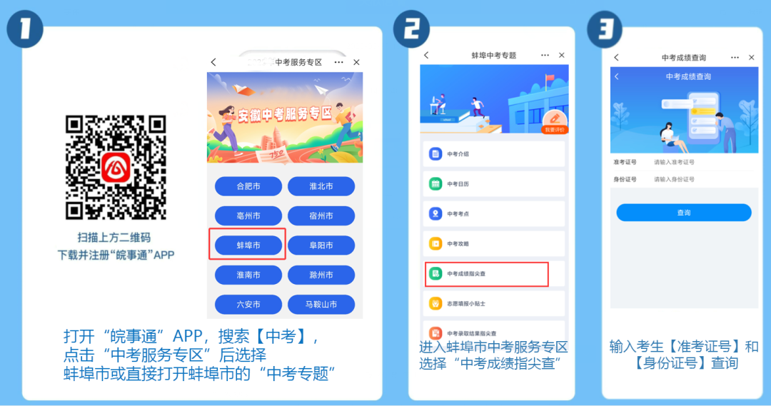1.蚌埠发布APP下载方式及查分操作步骤(中考成绩及八年级生物地理考试成绩)