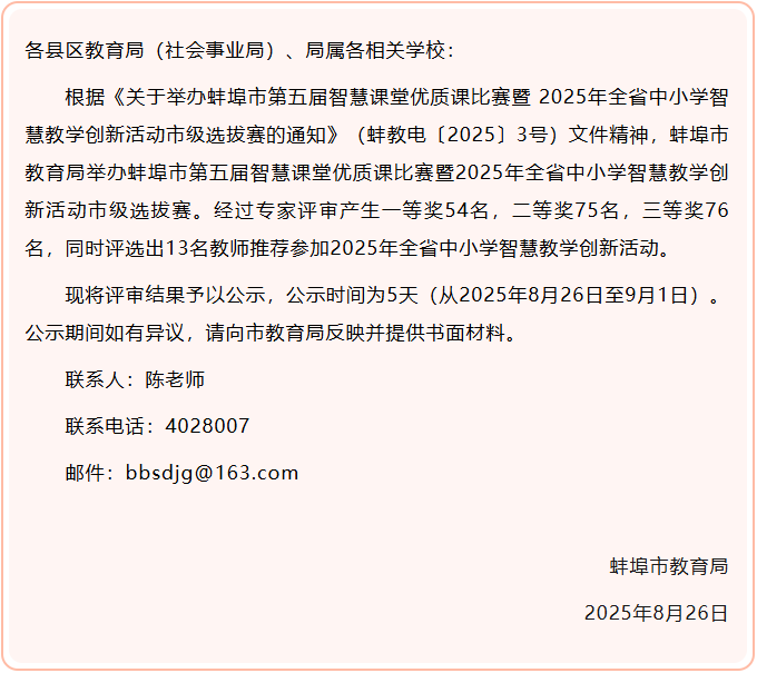 蚌埠市教育局最新公示