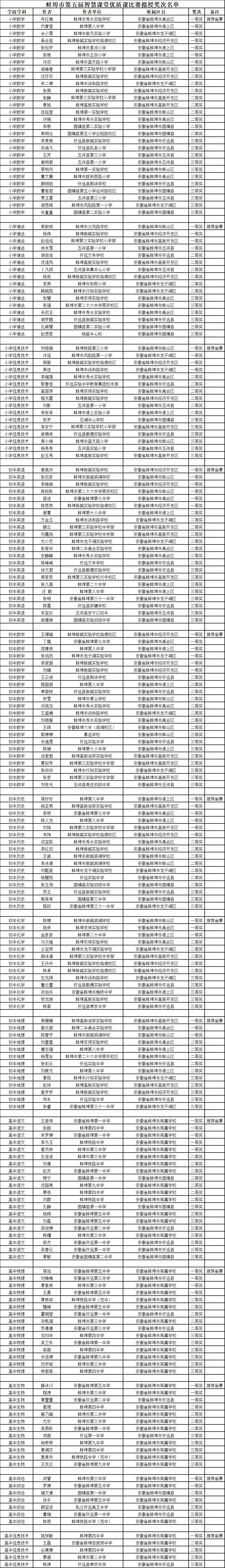 附件:蚌埠市第五届智慧课堂优质课比赛拟授奖次名单