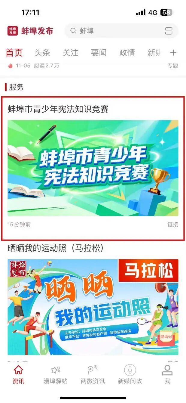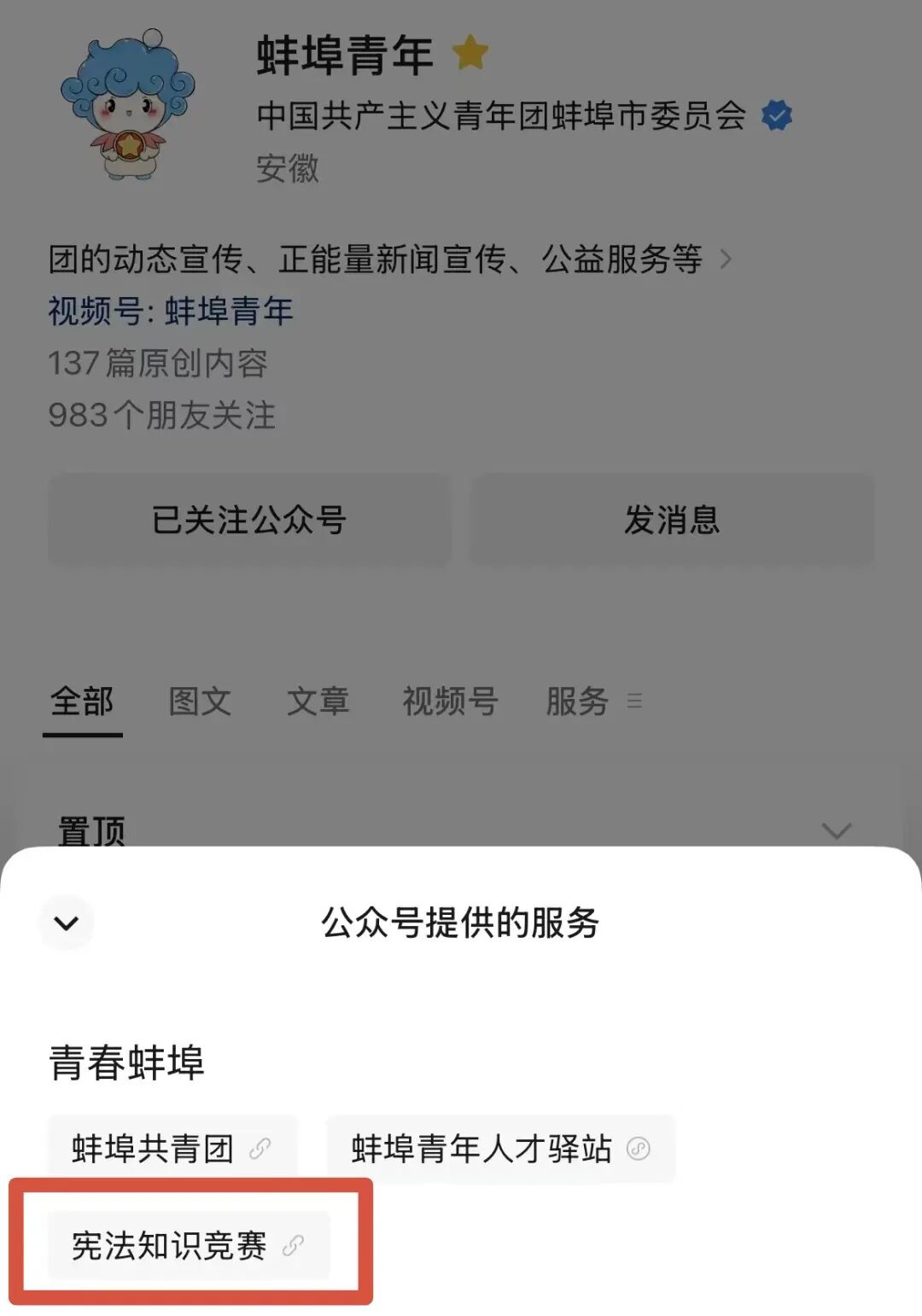 2.打开服务栏,点击进入“宪法知识竞赛”