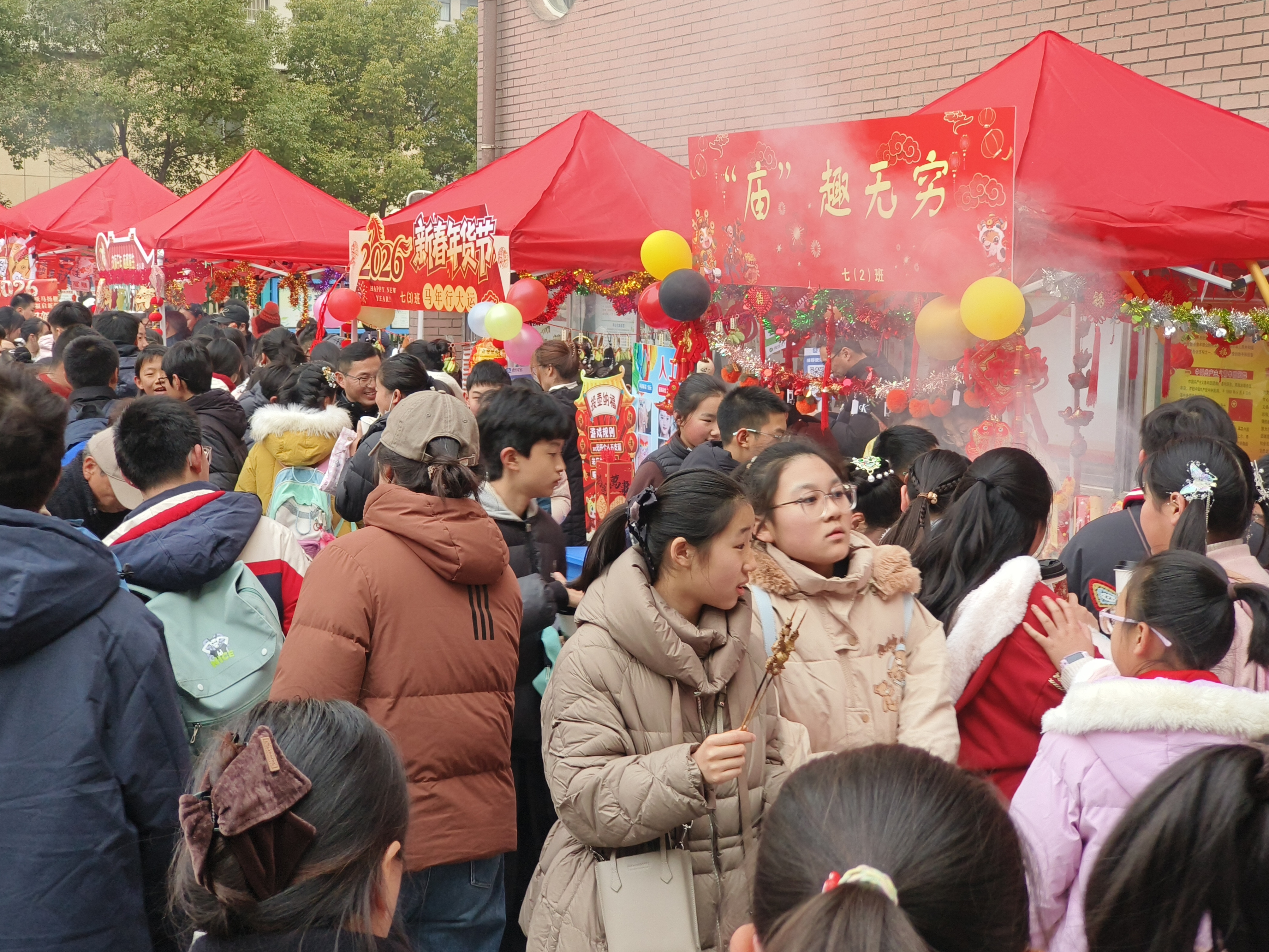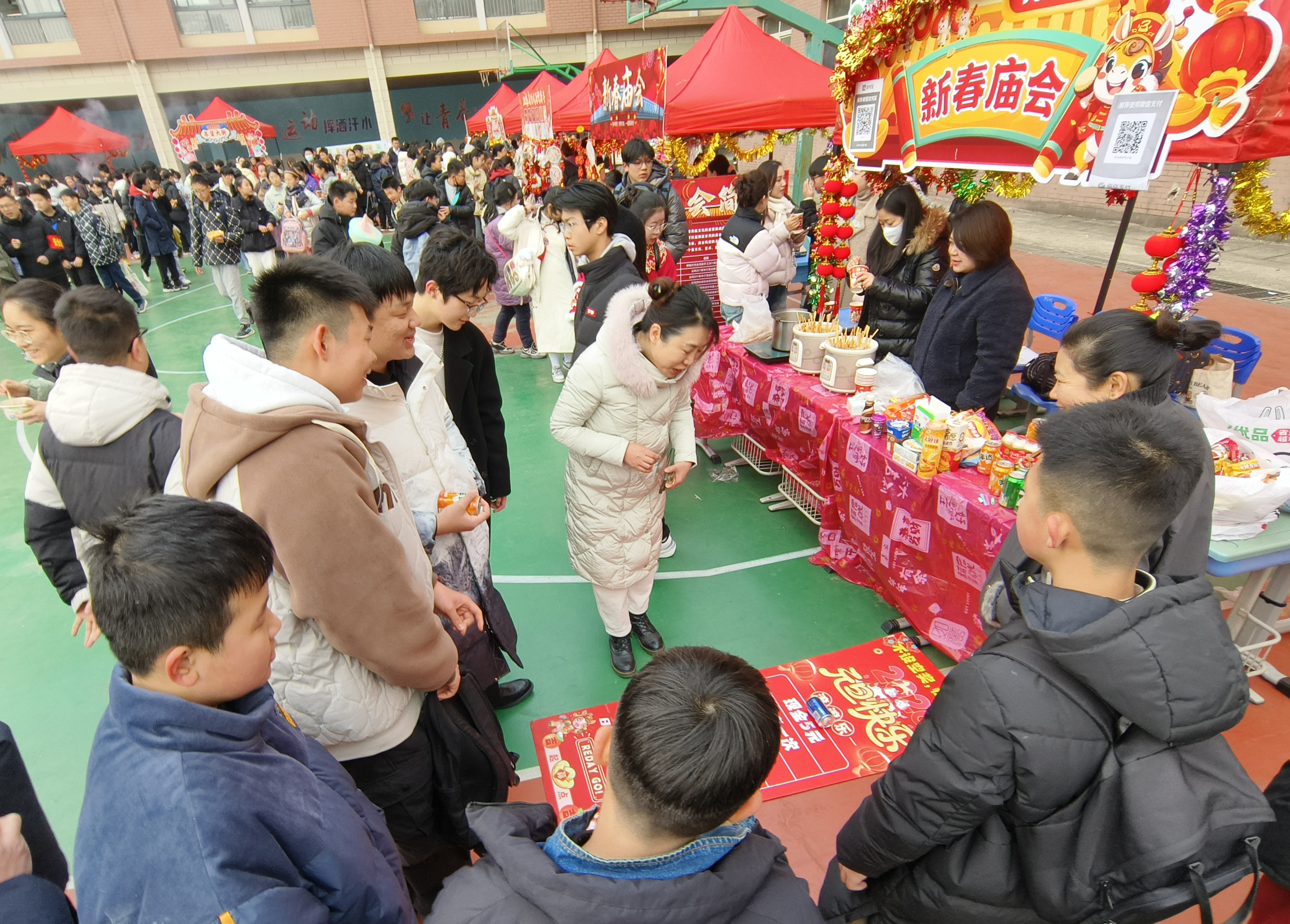 蚌埠发布客户端讯 (蚌埠新闻传媒中心记者 郭雷 通讯员 苏雅倩 文图)12月31日,蚌埠第一实验学校初中部张灯结彩,新年庙会热闹启幕。校园内摊位鳞次栉比,糖葫芦、关东煮等美食香气四溢。投壶、套圈等民俗游戏前笑语飞扬和学生们青春活力艺术表演相映成趣。师生们在逛吃游乐中沉浸式感受传统文化魅力,一张张笑脸定格岁末温情。这场兼具文化底蕴与青春活力的庙会,既传递了腊年新春的美好期许,更让“承传统文化,育现代公民”的理念深植心间。