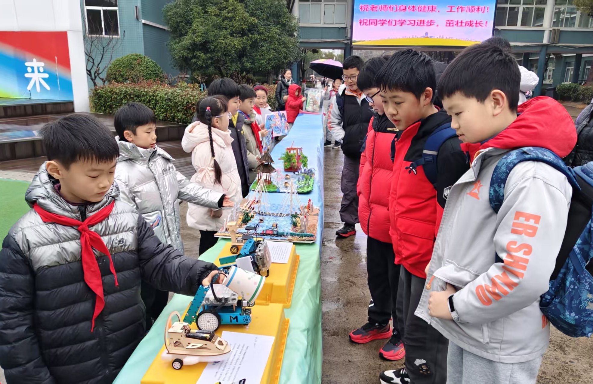 活动现场,科创微课题展台前围满跃动的身影。学生们指尖轻触太阳能小车、智能分类装置,目光灼灼探索机械奥秘;桌上一件件寒假科技作业——炫彩宇宙飞船画、手工船模、微型生态模拟场景等,见证着劳动与智慧的碰撞。欢笑声中,科技梦想在春天抽芽。