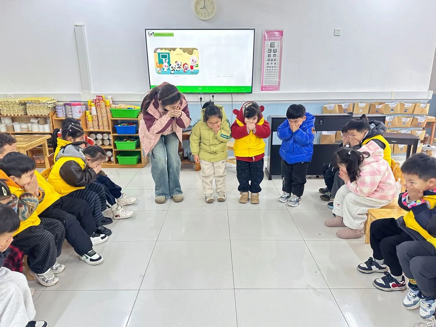 “上下楼梯要扶好,小手牵好不推挤;红灯停呀绿灯行,黄灯准备停一停……”清晨的蚌山幼儿园禹会分园里,稚嫩的童声正跟着老师一起诵读安全儿歌。
