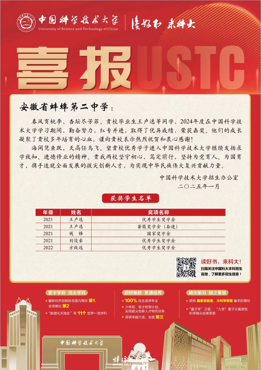 蚌埠二中周轩宇同学成功入选北京大学卓越计划