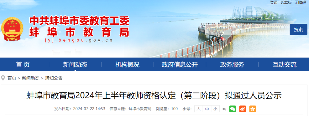 蚌埠市教育局2024年上半年教师资格认定(第二阶段)拟通过人员公示