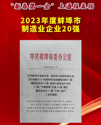 “新春第一会”上通报表扬2023年度蚌埠市制造业企业20强