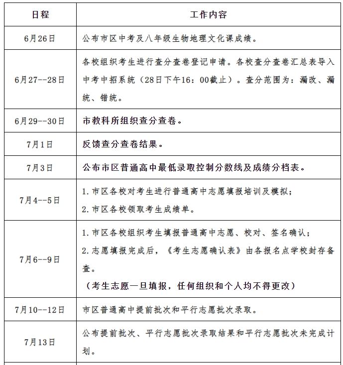 2024年安徽省普通高校招生录取工作日程安排表
