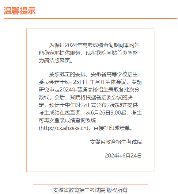 安徽高考查分时间确定