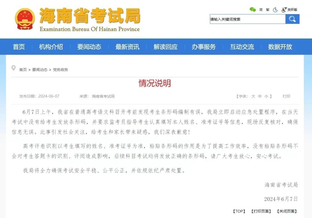 高考语文卷未发条形码,海南省考试局致歉