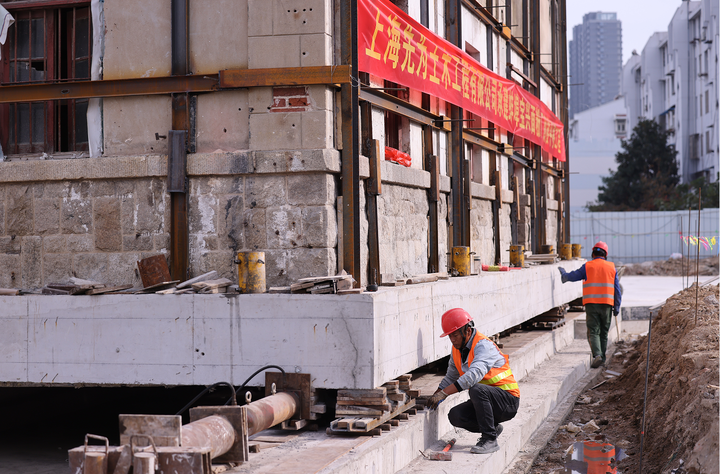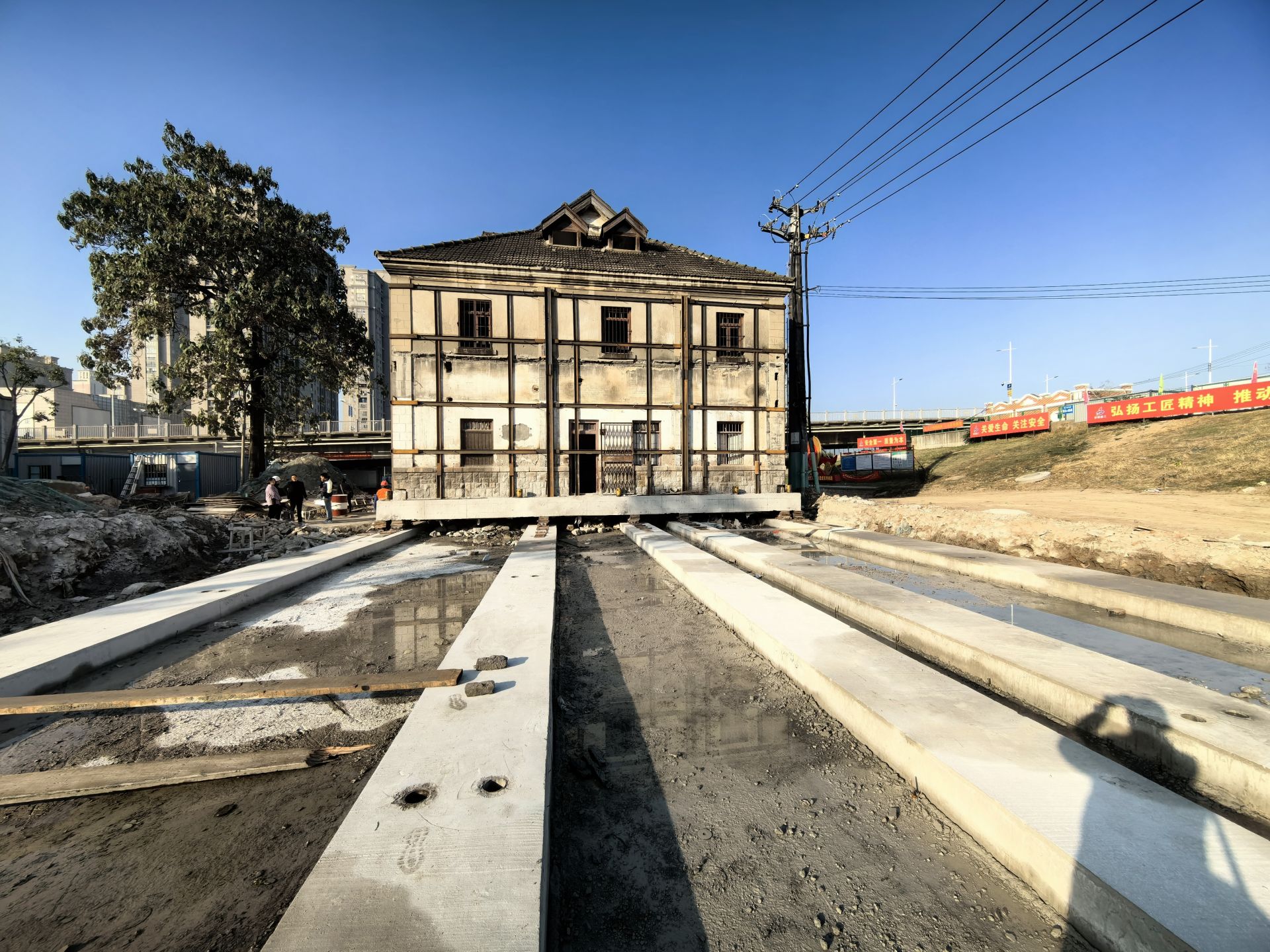 【带你看现场】宝兴面粉厂阁楼今天开始平移,每日平移约十米,将持续至月底