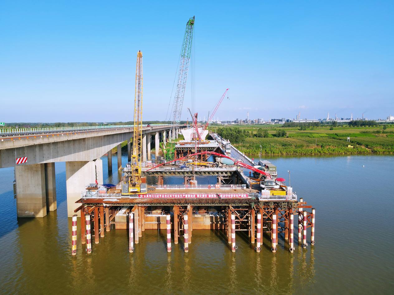 【带你看现场】G36宁洛高速明光至蚌埠段淮河特大桥主墩围堰封底