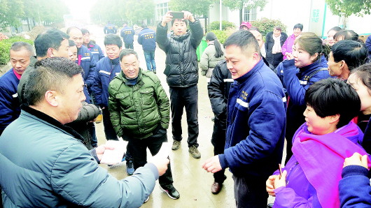 当记者来到该公司时,企业正在举办新年开工仪式,现场一片欢乐喜庆的氛围。在企业大门口,几十名员工围拢在企业法人徐波的周围,一一从他手中领取开工红包,而后满怀欣喜地走进生产车间,正式开始新一年的工作。