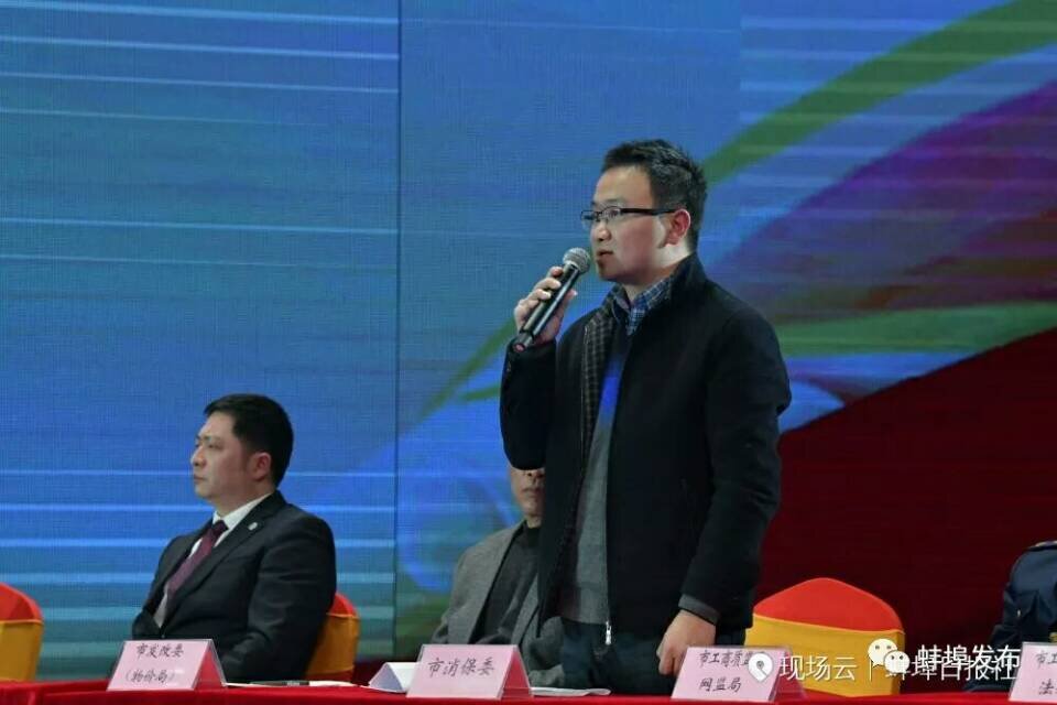 晚会现场,蚌埠市消费者权益保护委员会常务副主任、市工商质监局局长乌兰其其格和蚌埠市法律援助中心主任王宁,现场签订合作协议,为有需要的消费者在投诉维权的过程中提供法律援助。相关部门表示,为搭建维权的绿色通道、做强维权平台,打通消费维权最后一公里,就是为了提高消费投诉的便利度、消费环境的安全度、经营者的诚信度和消费者的满意度。通过消费维权的联动,让蚌埠成为诚信蚌埠、幸福蚌埠。