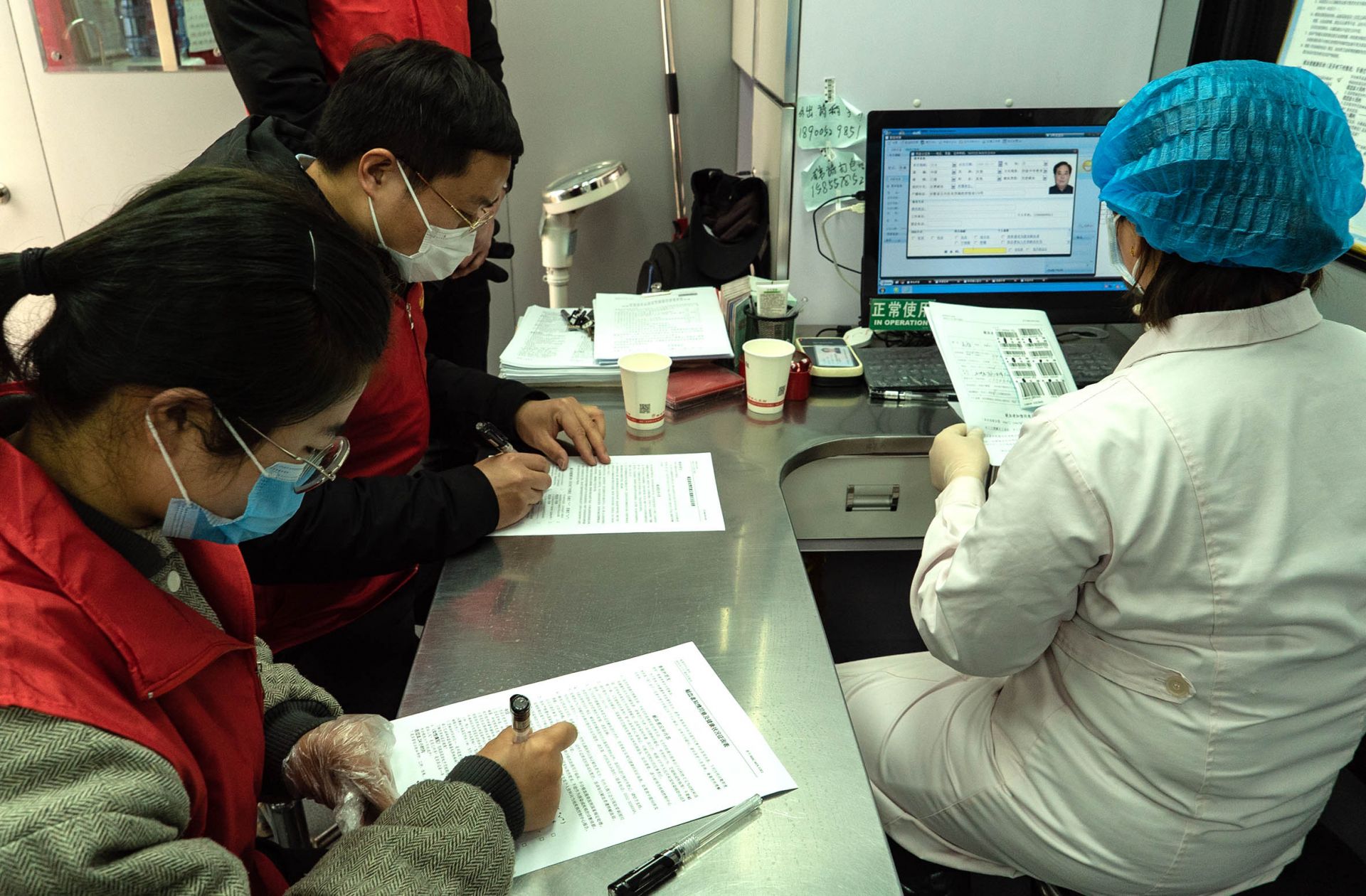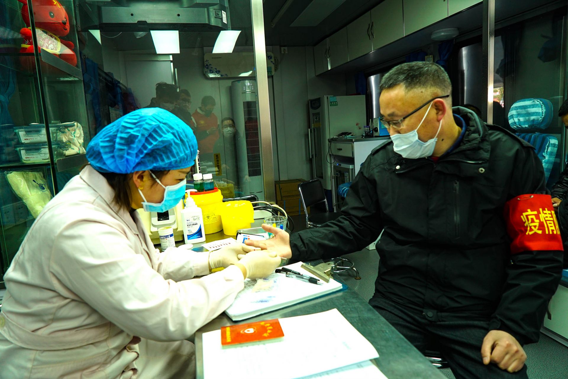 2月16日,五河县城志愿者在献血。新冠肺炎疫情期间,全省无偿献血工作受到影响,血液库存告急,2月15日晚,五河团县委向全县青年发出倡议,号召广大团员青年积极加入献血者队伍,为抗击疫情出一份力,青年志愿者、团员突击队的成员看到消息后,县直各单位、各级文明单位、社会各界纷纷响应,踊跃报名参加无偿献血。为了确保献血者的安全,五河县流动献血车在来之前要求每天有两名志愿者配合对献血者加强疫情排查,对献血场所增加消毒频次,确保献血安全。