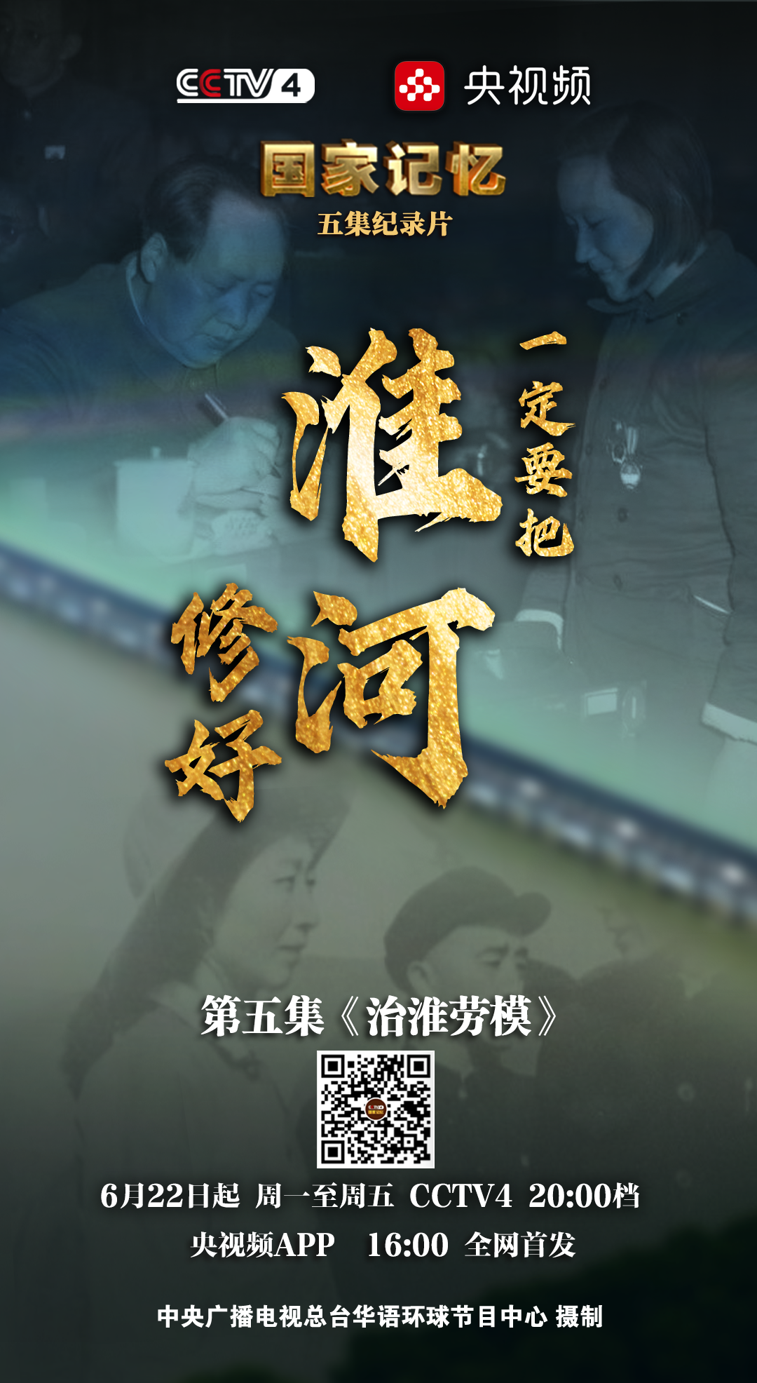 敬请收看今晚(6月26日)20:00档CCTV-4《国家记忆》《一定要把淮河修好》之《治淮劳模》